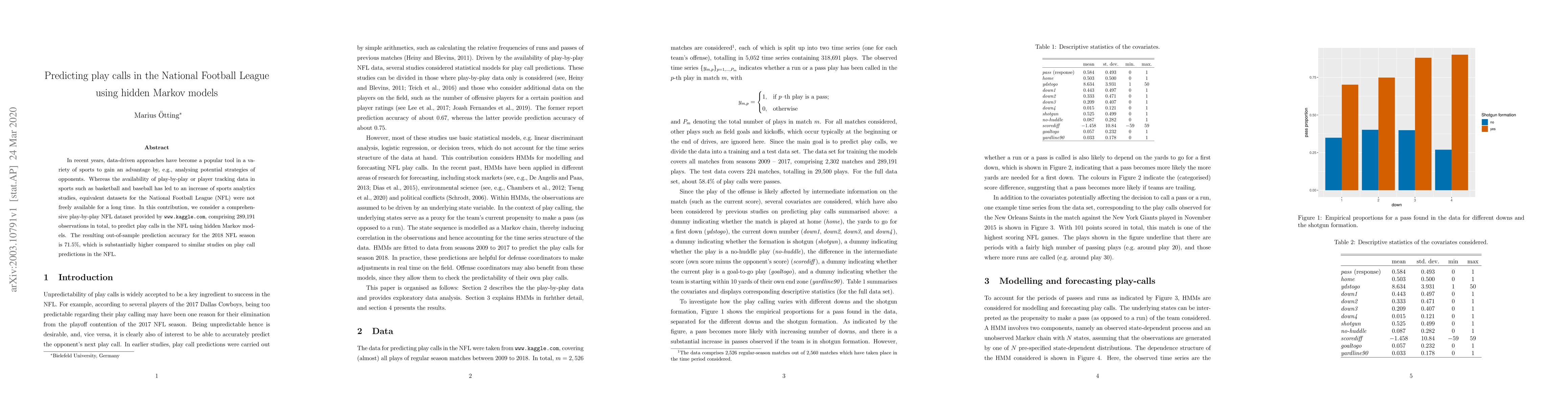 This paper uses hidden Markov models to predict NFL play calls using a comprehensive play-by-play dataset from Kaggle, achieving an out-of-sample prediction accuracy of 71.5% for the 2018 season, outperforming similar studies.