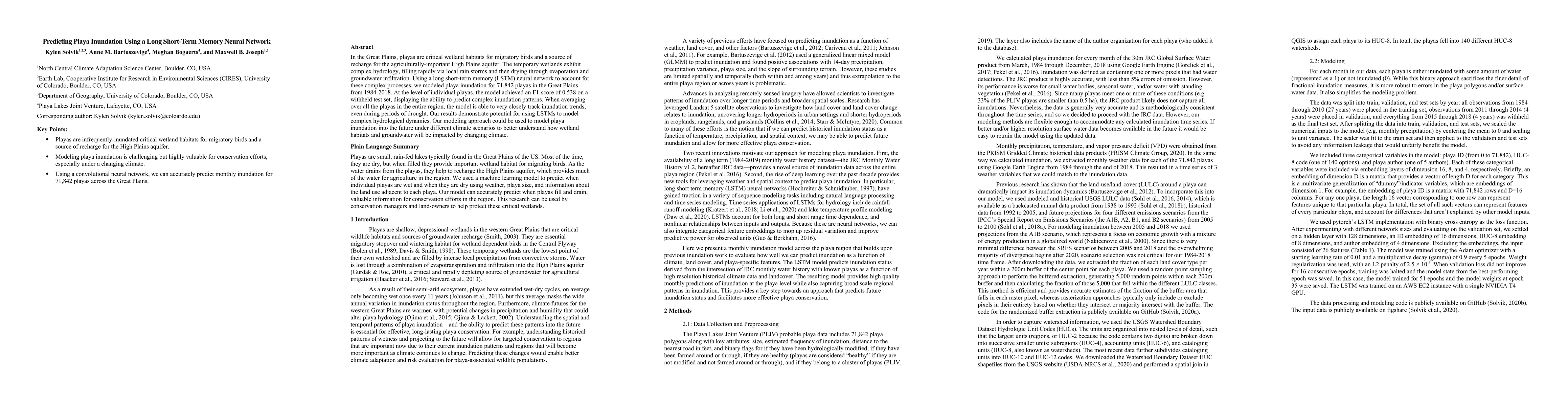 Researchers used a long short-term memory neural network to predict playa inundation in the Great Plains, achieving accurate results at both individual and regional levels, with potential applications for modeling wetland habitats under climate change.