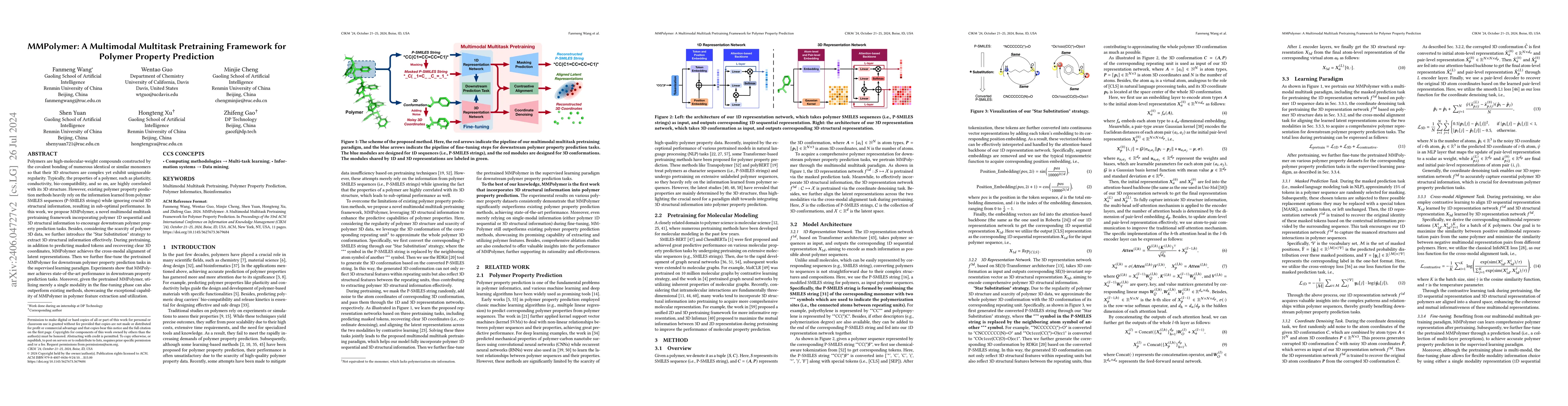 This paper introduces MMPolymer, a multimodal multitask pretraining framework that integrates both 1D polymer sequence information and 3D structural data to predict polymer properties more accurately. The proposed "Star Substitution" strategy enhances the extraction of 3D structural information, achieving state-of-the-art performance in polymer property predictions.
