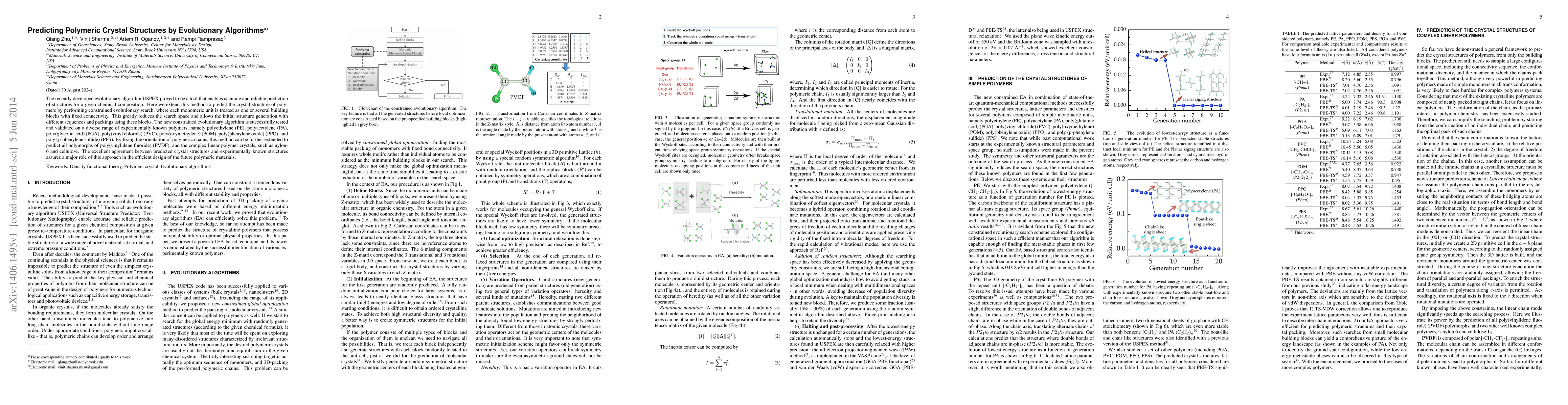 This research introduces a new method using evolutionary algorithms to predict crystal structures of various polymers, including PE, PA, PGA, PVC, POM, PPO, and PPS. The approach fixes polymeric chain orientations, enabling prediction of all polymorphs of PVDF and complex polymers like nylon-6 and cellulose, demonstrating high accuracy and potential for efficient design of future polymeric materials.