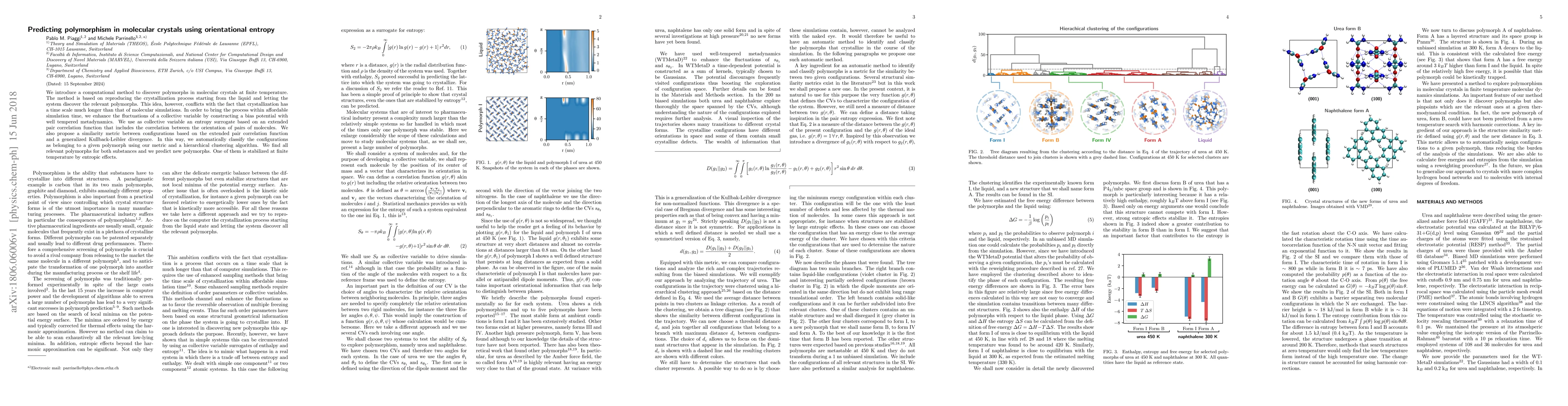 The paper presents a computational method combining well-tempered metadynamics with an entropy-based collective variable and a novel similarity metric for automatic classification of molecular crystal polymorphs.