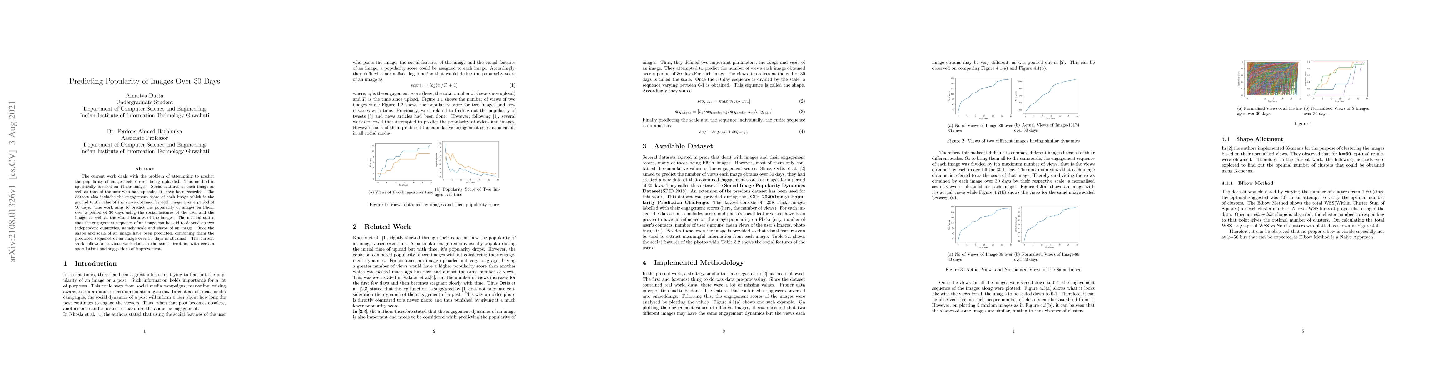 The current work deals with the problem of attempting to predict the popularity of images before even being uploaded. This method is specifically focused on Flickr images. Social features of each image as well as that of the user who had uploaded it, have been recorded. The dataset also includes the engagement score of each image which is the ground truth value of the views obtained by each image over a period of 30 days. The work aims to predict the popularity of images on Flickr over a period of 30 days using the social features of the user and the image, as well as the visual features of the images. The method states that the engagement sequence of an image can be said to depend on two independent quantities, namely scale and shape of an image. Once the shape and scale of an image have been predicted, combining them the predicted sequence of an image over 30 days is obtained. The current work follows a previous work done in the same direction, with certain speculations and suggestions of improvement.