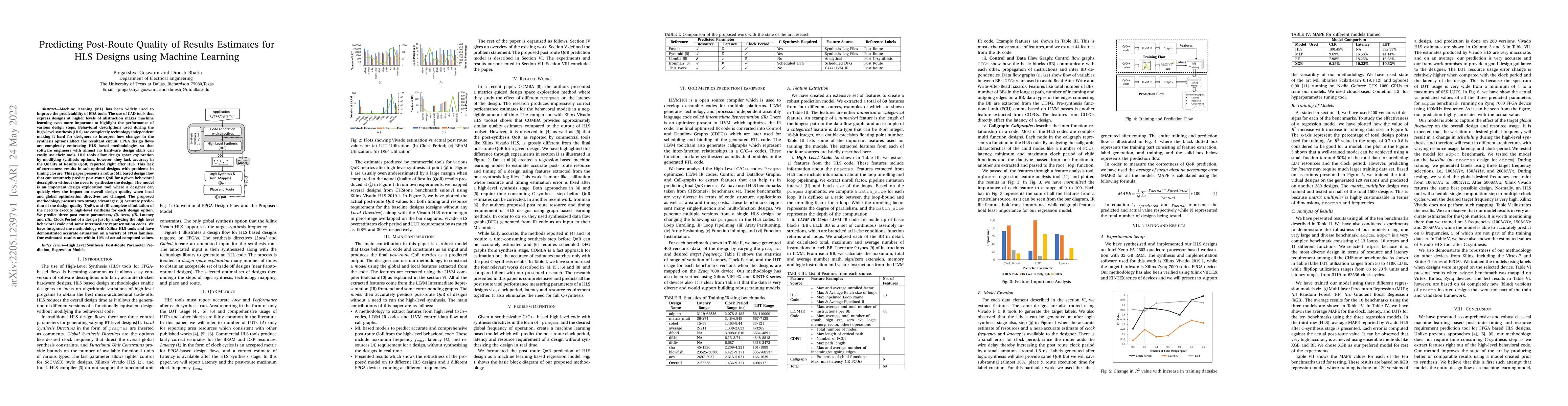 This paper proposes a machine learning model to predict post-route Quality of Results (QoR) for high-level synthesis (HLS) designs, estimating area, latency, and clock period without full synthesis. The method offers accurate QoR predictions and eliminates the need for executing HLS for each design option, enhancing design exploration efficiency.
