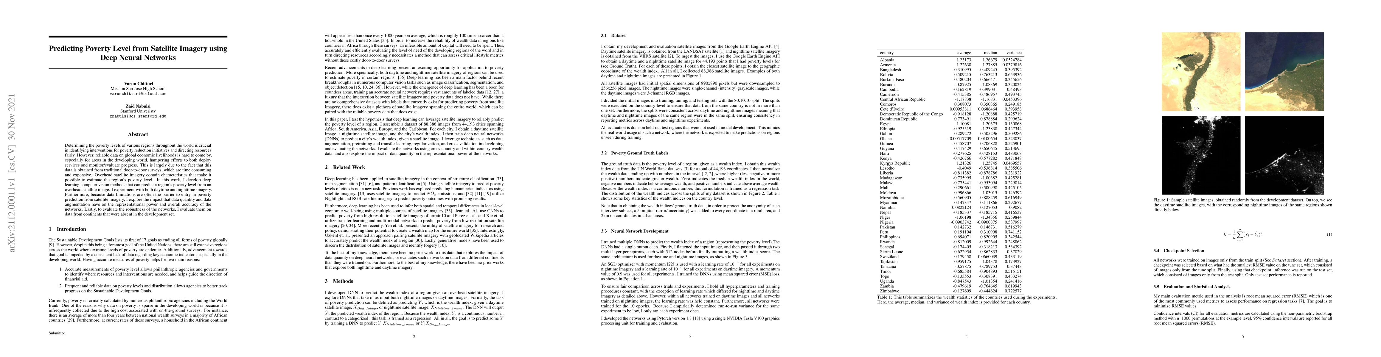 This research develops deep learning methods to predict poverty levels from satellite imagery, addressing the lack of reliable data in developing regions. The study explores the impact of data quantity and augmentation on model accuracy and evaluates the robustness of the models using unseen data from different continents.