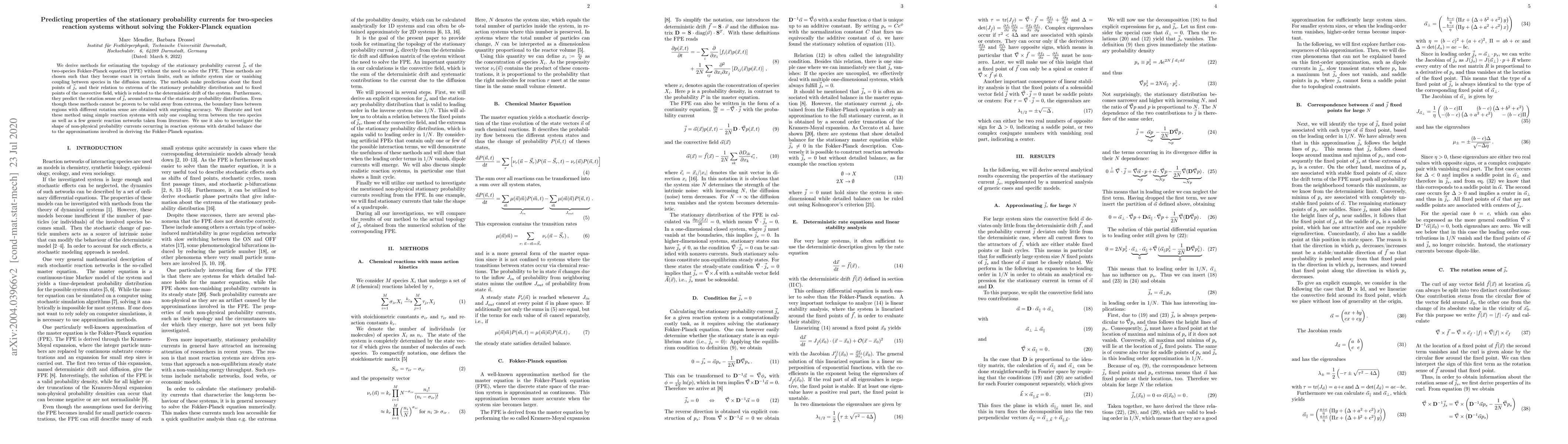 This paper develops methods to estimate the topology of stationary probability currents in two-species reaction systems without solving the Fokker-Planck equation, predicting fixed points and rotation sense with surprising accuracy, even in non-physical scenarios. The methods are exact in certain limits and tested on simple reaction systems and generic networks.