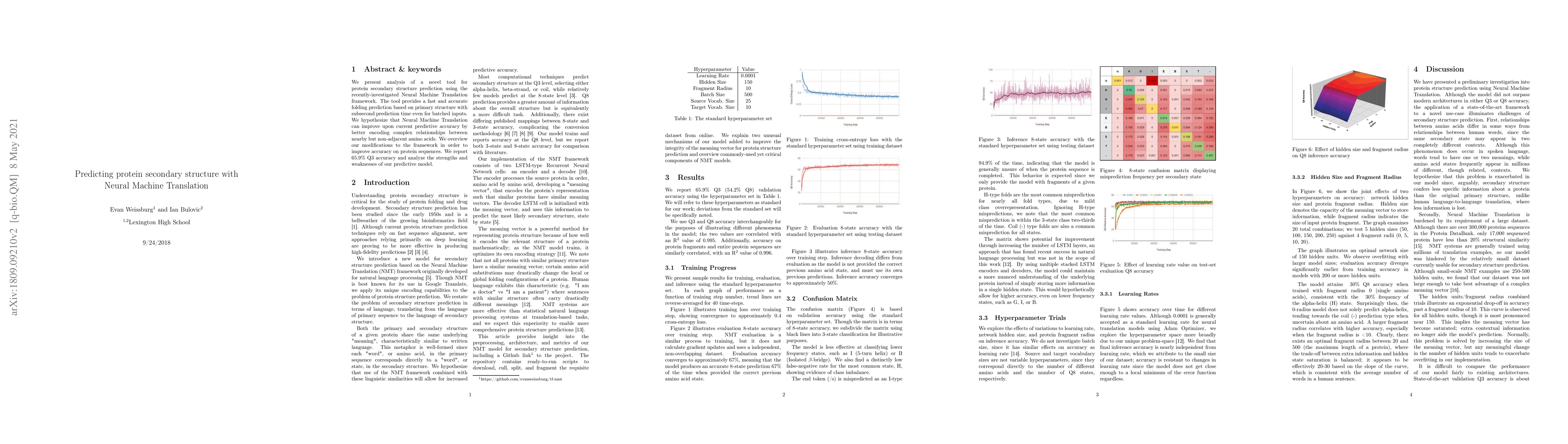 We present analysis of a novel tool for protein secondary structure prediction using the recently-investigated Neural Machine Translation framework. The tool provides a fast and accurate folding prediction based on primary structure with subsecond prediction time even for batched inputs. We hypothesize that Neural Machine Translation can improve upon current predictive accuracy by better encoding complex relationships between nearby but non-adjacent amino acids. We overview our modifications to the framework in order to improve accuracy on protein sequences. We report 65.9% Q3 accuracy and analyze the strengths and weaknesses of our predictive model.