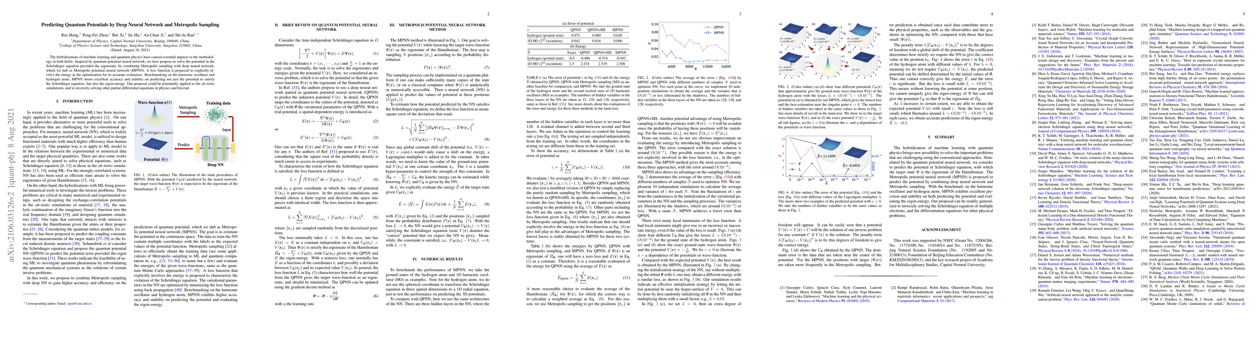 This paper proposes a novel method called Metropolis Potential Neural Network (MPNN) that combines deep neural networks with Metropolis sampling to predict quantum potentials and eigen-energies. The method demonstrates high accuracy and stability in predicting potentials for the harmonic oscillator and hydrogen atom, showing potential for ab-initio simulations and solving other partial differential equations.