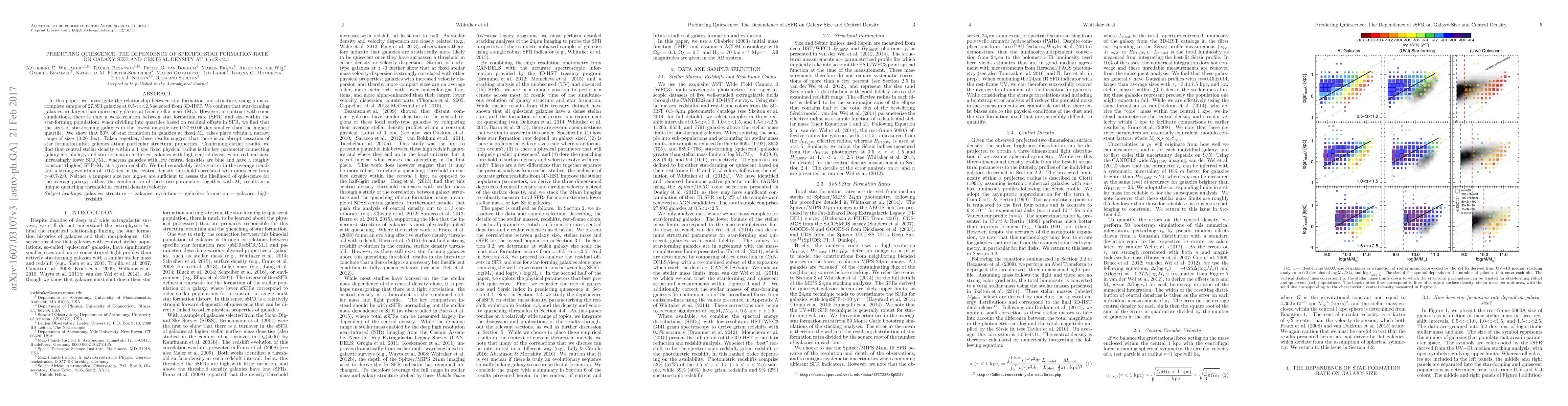 This paper investigates the relationship between star formation and galaxy structure in a sample of 27,893 galaxies at $0.5<z<2.5$, finding that star-forming galaxies are larger than quiescent ones at fixed stellar mass. It reveals a weak size dependence on star formation rate within star-forming galaxies and emphasizes that central stellar density is crucial for predicting quiescence, with a strong evolution in the density threshold correlating with galaxy quiescence over the redshift range.
