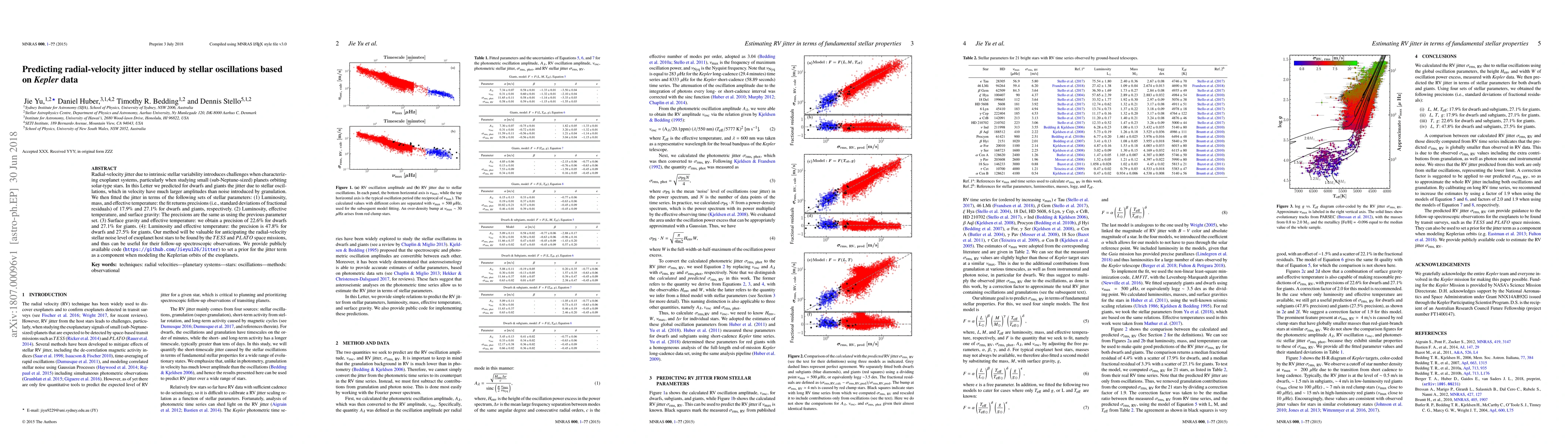 This paper predicts radial-velocity jitter from stellar oscillations in dwarfs and giants using Kepler data, achieving precisions of 17.9% and 27.1% respectively. The method is valuable for anticipating noise in exoplanet host stars, aiding TESS and PLATO missions, and is supported by publicly available code.