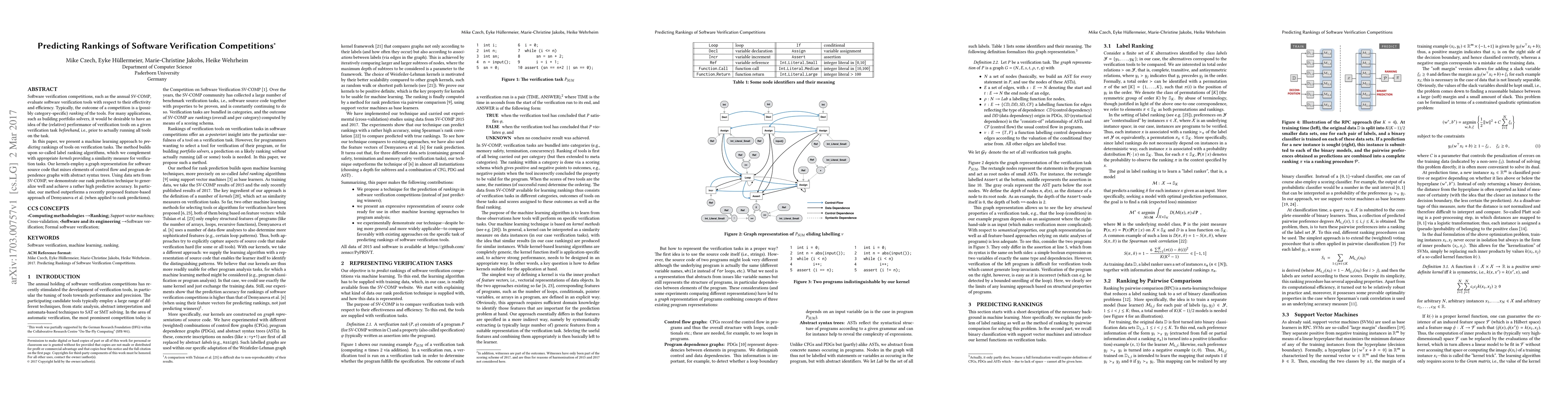 This paper presents a machine learning method for predicting the rankings of software verification tools in competitions like SV-COMP. It employs label ranking algorithms enhanced with custom kernels that use graph representations of software source code to capture task similarities, achieving high predictive accuracy and outperforming a previous feature-based approach.