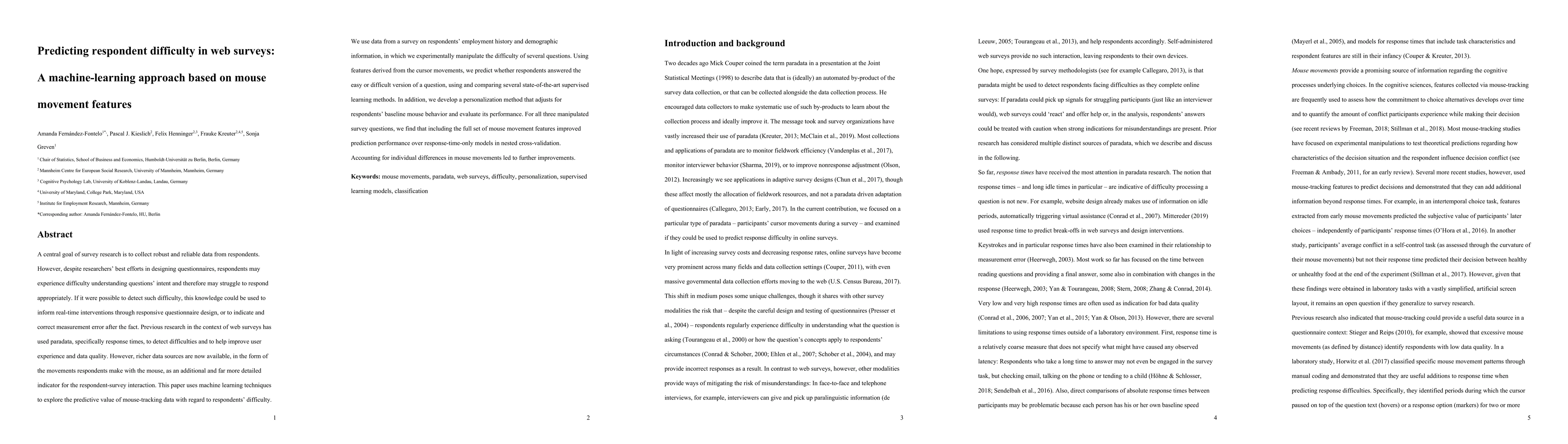 Frauke Kreuter, Sonja Greven, Amanda Fernández-Fontelo et al.