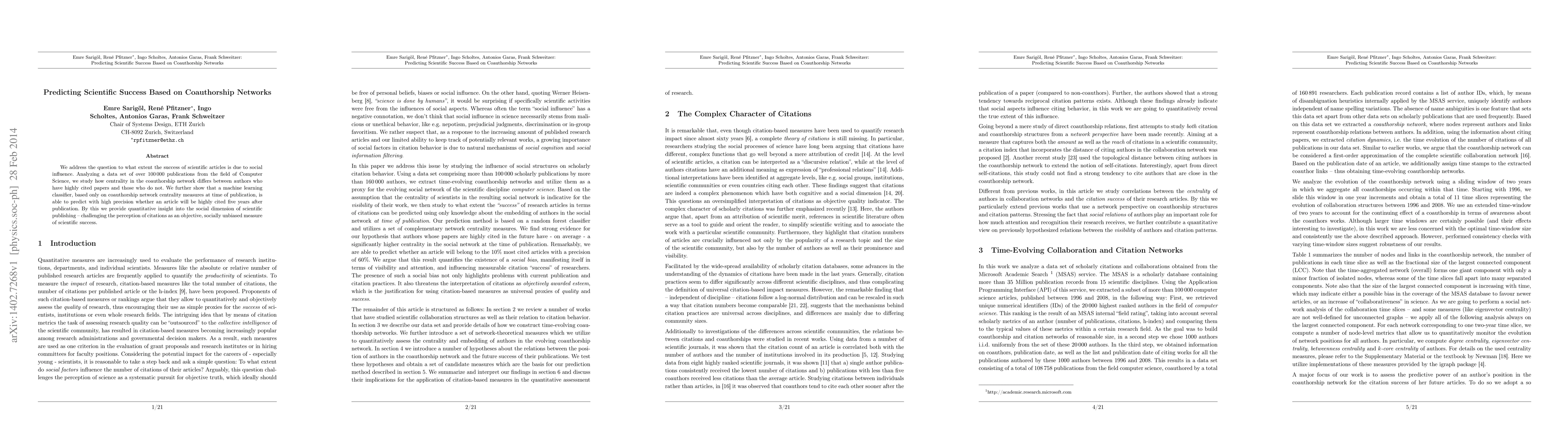 This study investigates the role of social influence in scientific success by analyzing coauthorship networks in Computer Science. It finds that authors with higher centrality in these networks tend to produce highly cited papers, and a machine learning classifier can predict future citation success based on initial network centrality.