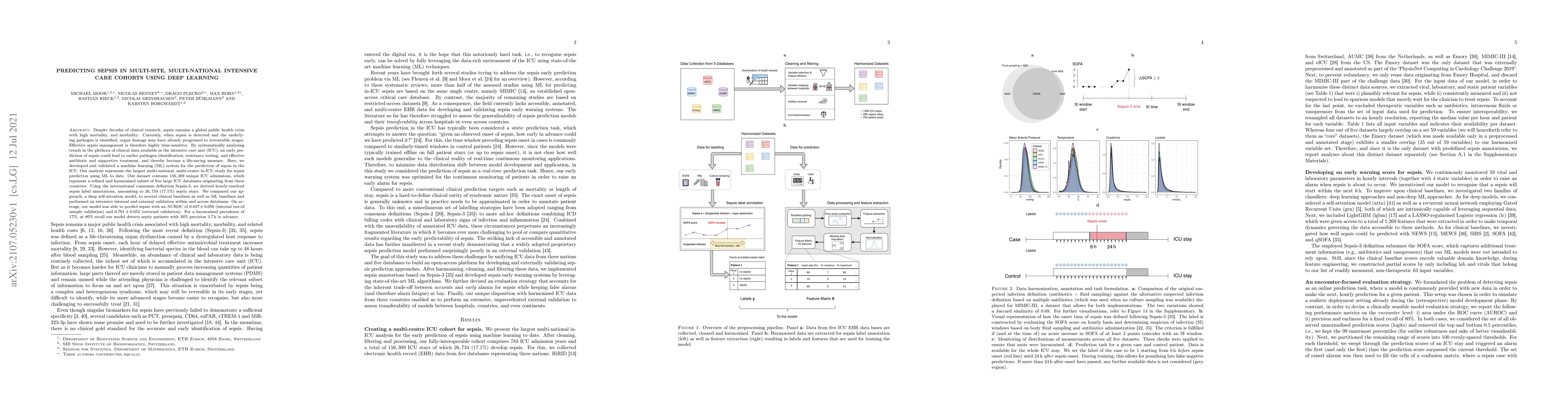 This study developed a deep learning model to predict sepsis in intensive care units across multiple countries, achieving an average AUROC of 0.847 in internal validation and 0.761 in external validation. The model can identify septic patients with 39% precision 3.7 hours ahead, potentially enabling earlier treatment and improving outcomes.