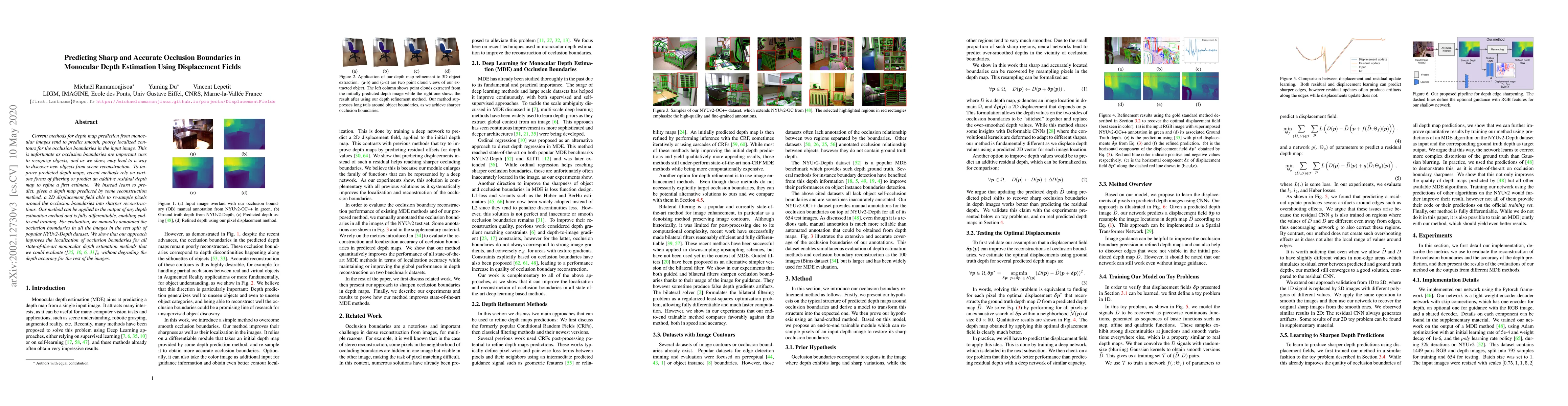 This paper proposes a method to predict sharp and accurate occlusion boundaries in monocular depth estimation using displacement fields, improving the localization of these boundaries without affecting overall depth accuracy. The approach refines initial depth maps by learning to re-sample pixels around occlusions, enhancing object recognition and scene reconstruction.