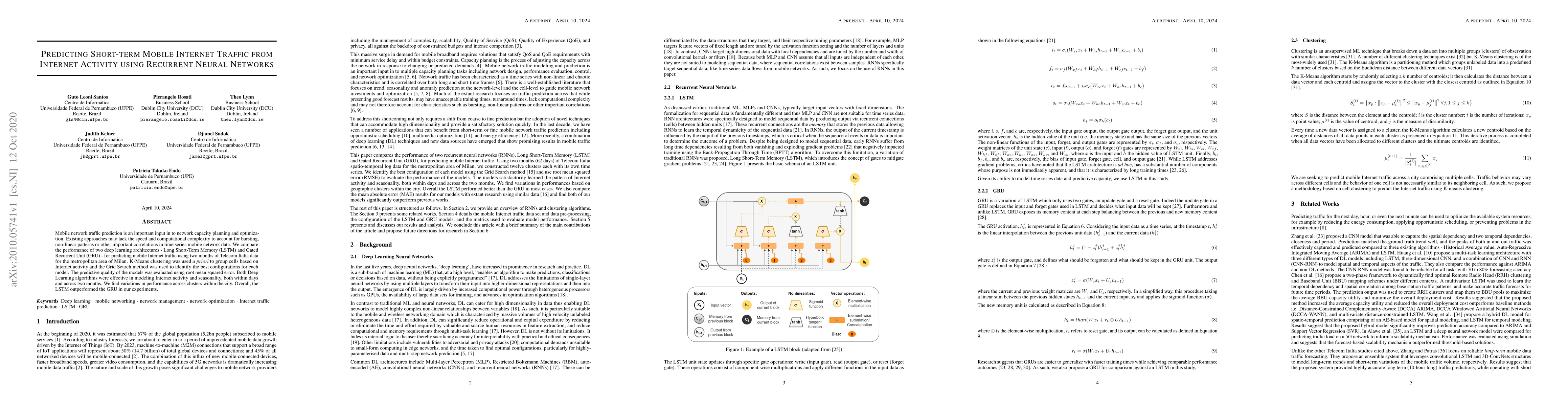 This study compares LSTM and GRU deep learning models for predicting short-term mobile Internet traffic in Milan using Telecom Italia data. LSTM outperformed GRU in modeling Internet activity and seasonality, demonstrating the effectiveness of both models in capturing complex patterns.