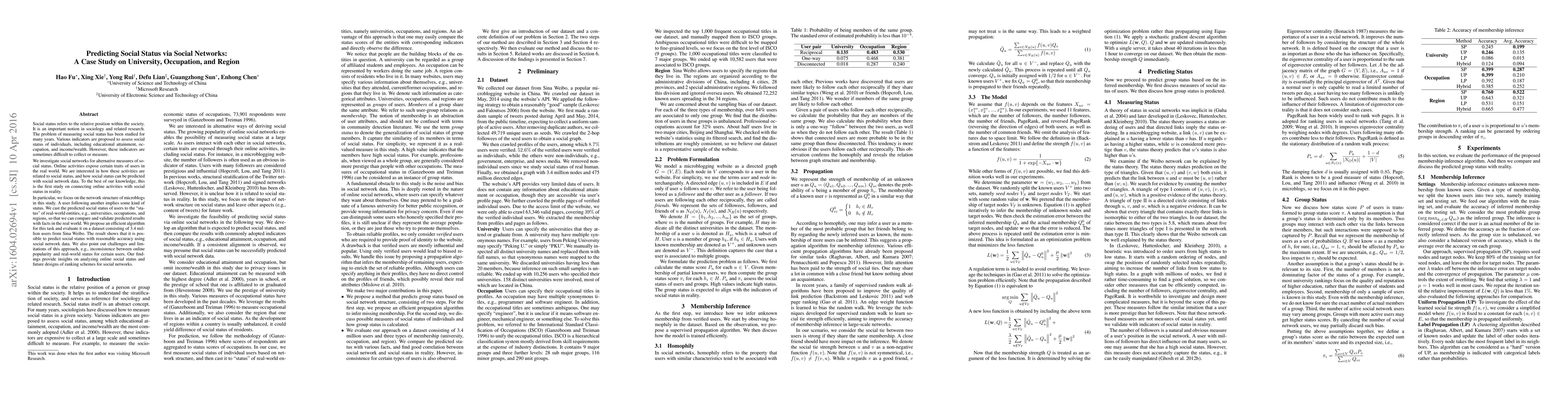 Researchers developed a method to predict social status using online microblog activity, achieving reasonable accuracy on a dataset of 3.4 million users. The study provides insights into analyzing online social status and informs future designs for ranking schemes in social networks.