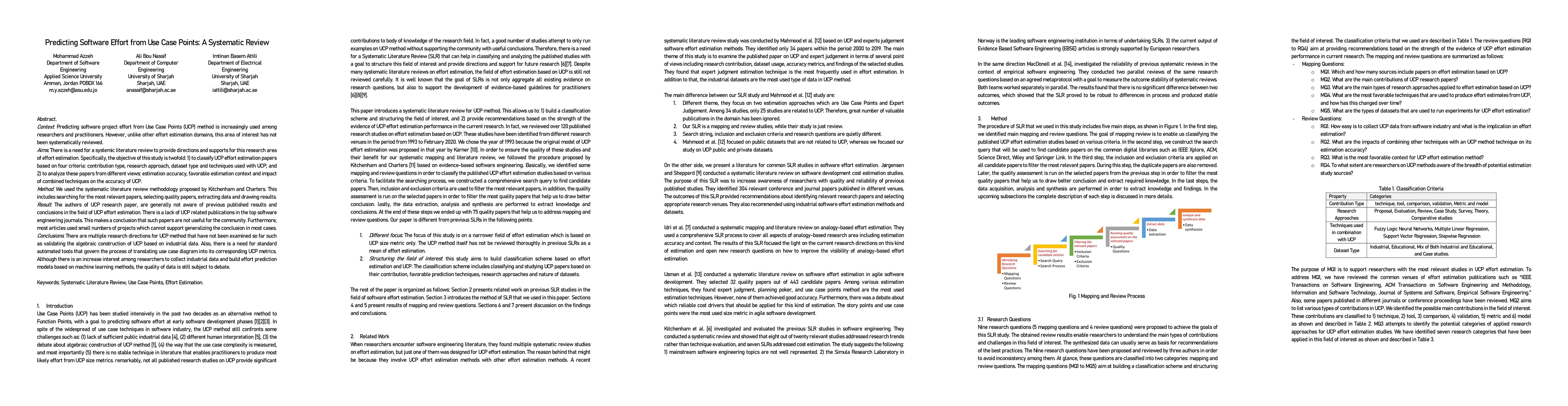 This paper systematically reviews research on predicting software effort using the Use Case Points (UCP) method, classifying studies based on contribution type, research approach, dataset type, and techniques used. It finds a lack of awareness of previous results, limited publication in top journals, and insufficient data for general conclusions, highlighting the need for further research and standardized tools for UCP metric translation.