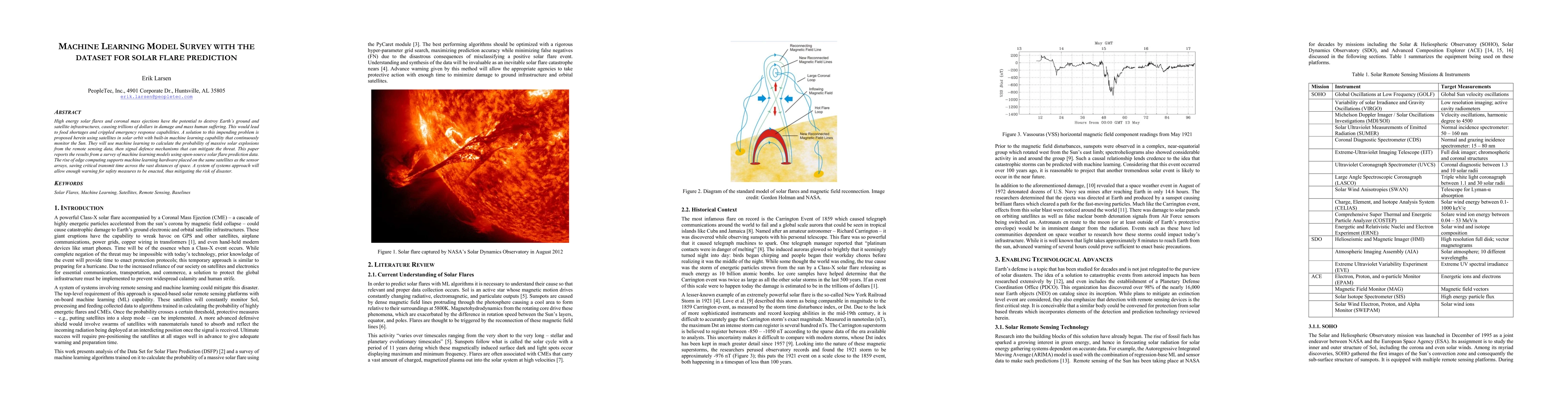 This paper proposes a system using remote sensing satellites and machine learning to predict solar flares, aiming to provide early warnings to mitigate potential damage to Earth's infrastructure. It surveys current models and highlights the benefits of edge computing for real-time analysis, emphasizing the need for continuous algorithm training to improve accuracy.