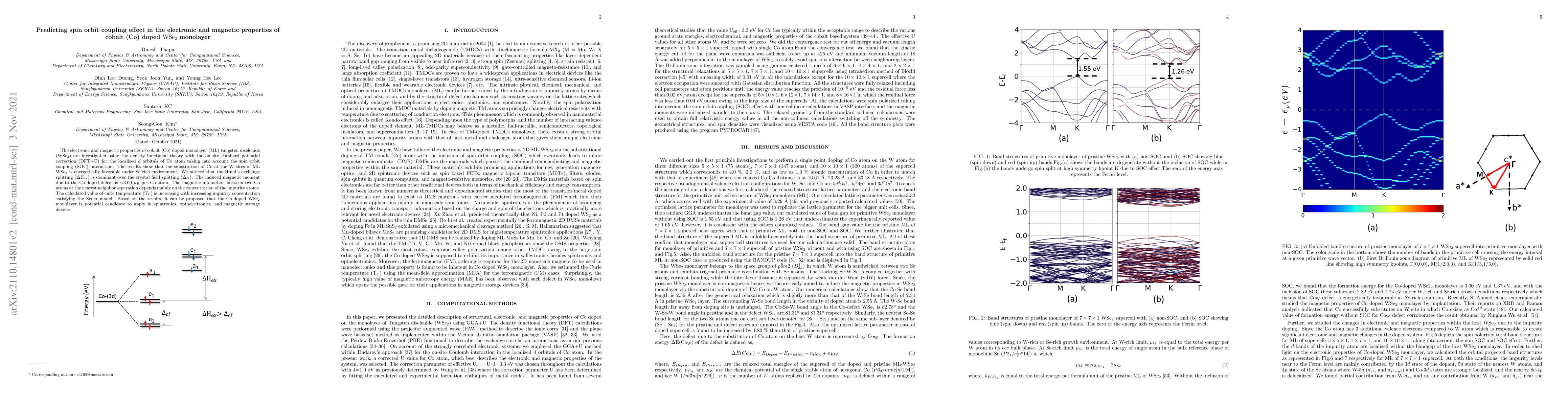 This study investigates the electronic and magnetic properties of cobalt-doped WSe2 monolayer using DFT+U, revealing that Co substitution at W sites is favorable under Se-rich conditions. The induced magnetic moment is ~3.00 μB per Co atom, with Curie temperature increasing with Co concentration, suggesting potential applications in spintronics and magnetic storage.