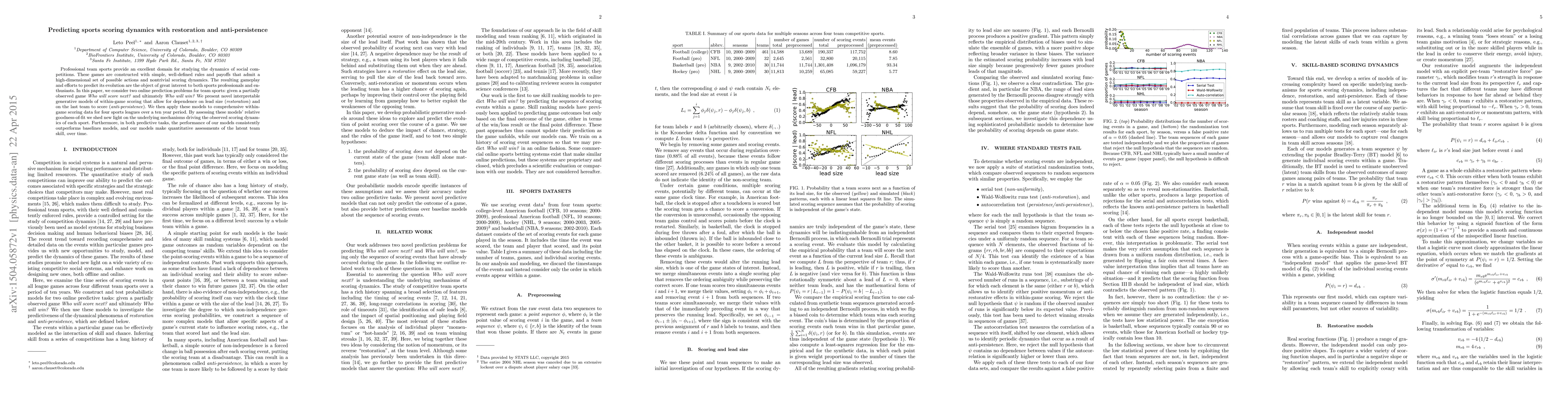 Professional team sports provide an excellent domain for studying the dynamics of social competitions. These games are constructed with simple, well-defined rules and payoffs that admit a high-dimensional set of possible actions and nontrivial scoring dynamics. The resulting gameplay and efforts to predict its evolution are the object of great interest to both sports professionals and enthusiasts. In this paper, we consider two online prediction problems for team sports:~given a partially observed game Who will score next? and ultimately Who will win? We present novel interpretable generative models of within-game scoring that allow for dependence on lead size (restoration) and on the last team to score (anti-persistence). We then apply these models to comprehensive within-game scoring data for four sports leagues over a ten year period. By assessing these models' relative goodness-of-fit we shed new light on the underlying mechanisms driving the observed scoring dynamics of each sport. Furthermore, in both predictive tasks, the performance of our models consistently outperforms baselines models, and our models make quantitative assessments of the latent team skill, over time.