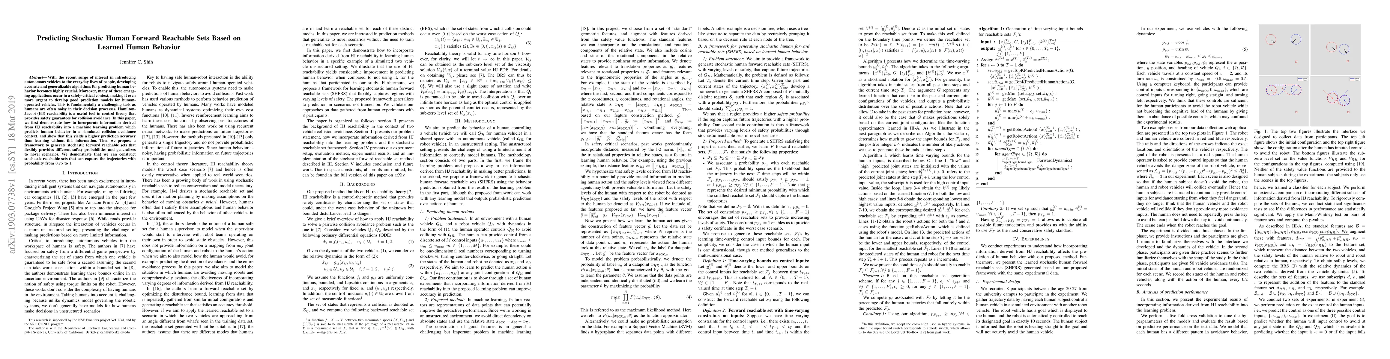 This paper develops a machine learning framework to predict human behavior in collision avoidance scenarios by integrating Hamilton-Jacobi reachability, achieving higher accuracy. It also proposes a method to generate stochastic forward reachable sets with varying safety probabilities, demonstrating flexibility and generalization to new contexts.