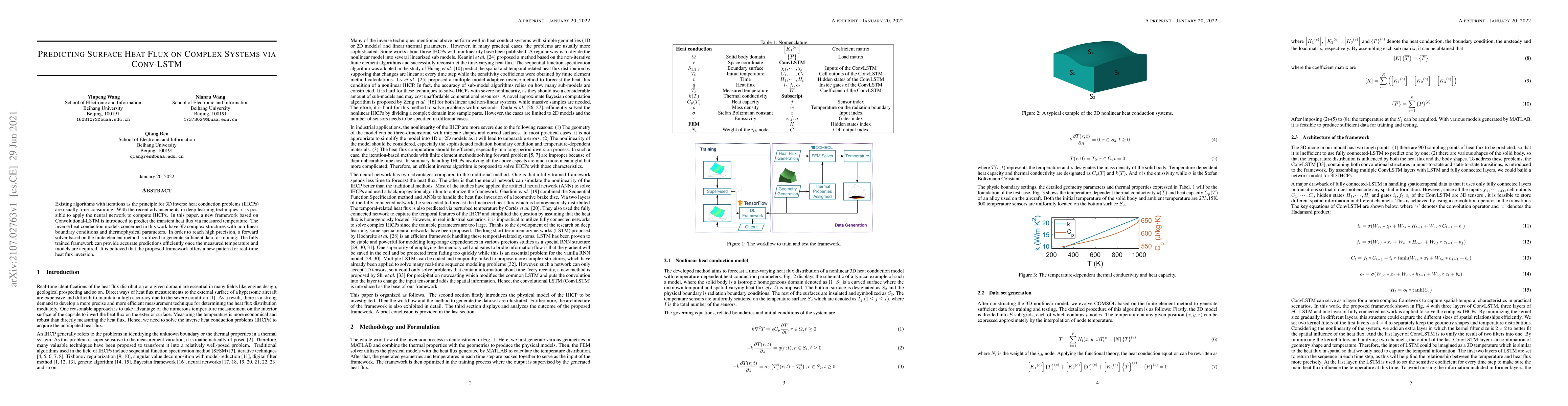 Existing algorithms with iterations as the principle for 3D inverse heat conduction problems (IHCPs) are usually time-consuming. With the recent advancements in deep learning techniques, it is possible to apply the neural network to compute IHCPs. In this paper, a new framework based on Convolutional-LSTM is introduced to predict the transient heat flux via measured temperature. The inverse heat conduction models concerned in this work have 3D complex structures with non-linear boundary conditions and thermophysical parameters. In order to reach high precision, a forward solver based on the finite element method is utilized to generate sufficient data for training. The fully trained framework can provide accurate predictions efficiently once the measured temperature and models are acquired. It is believed that the proposed framework offers a new pattern for real-time heat flux inversion.