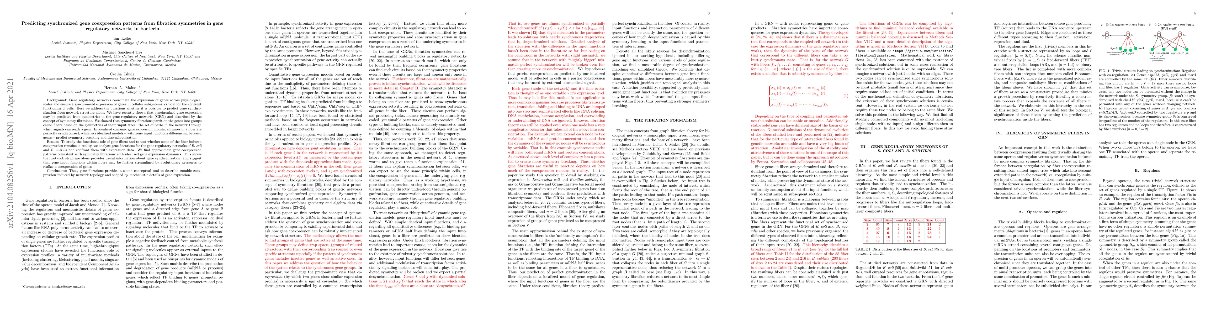 This study investigates whether gene synchronization in bacterial gene regulatory networks can be predicted from network structure alone, using symmetry fibrations. The analysis of E. coli and B. subtilis networks reveals approximate coexpression patterns consistent with idealized dynamics, suggesting that network topology provides useful information about gene synchronization.