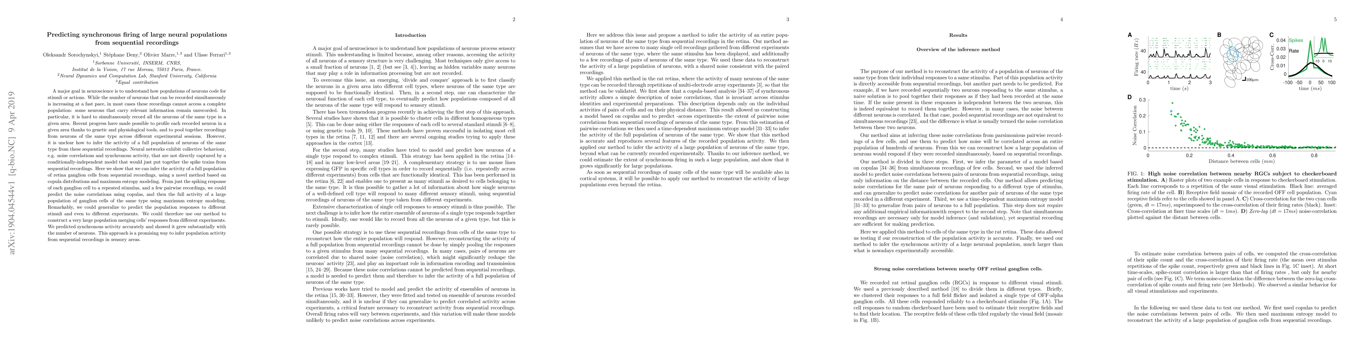 This paper presents a novel method to infer the activity of large neural populations from sequential recordings by using copula distributions and maximum entropy modeling. The approach successfully predicts synchronous firing and noise correlations across different stimuli and experiments, offering a promising technique for understanding neural population dynamics.