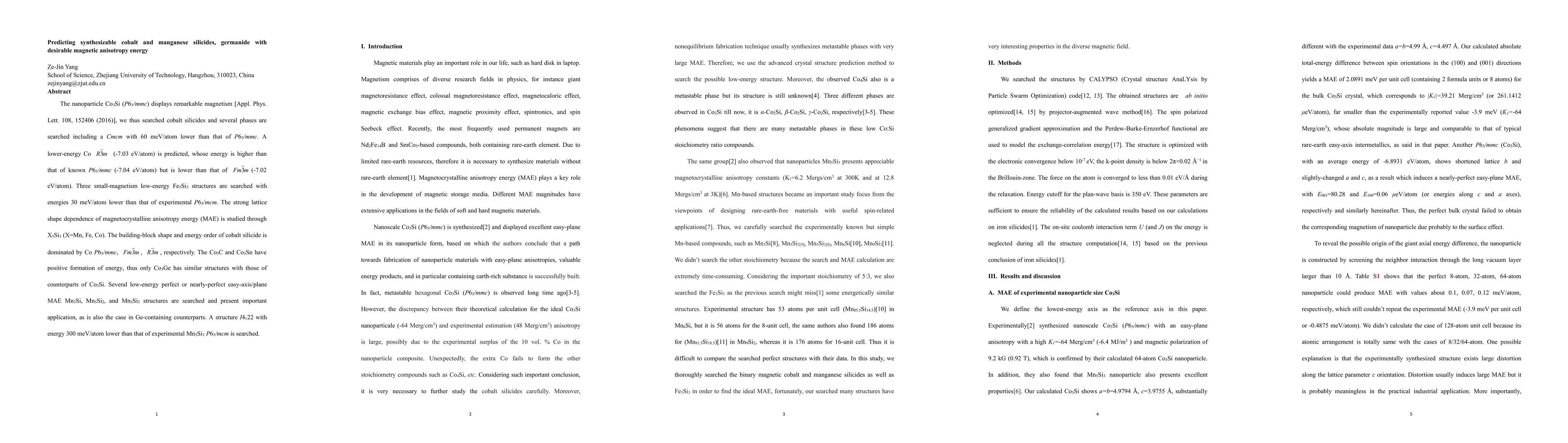 The nanoparticle Co3Si (P63/mmc) displays remarkable magnetism [Appl. Phys. Lett. 108, 152406 (2016)], we thus searched cobalt silicides and several phases are searched including a Cmcm with 60 meV/atom lower than that of P63/mmc. A lower-energy Co R3m (-7.03 eV/atom) is predicted, whose energy is higher than that of known P63/mmc (-7.04 eV/atom) but is lower than that of Fm3m (-7.02 eV/atom). Three small-magnetism low-energy Fe5Si3 structures are searched with energies 30 meV/atom lower than that of experimental P63/mcm. The strong lattice shape dependence of magnetocrystalline anisotropy energy (MAE) is studied through X5Si3 (X=Mn, Fe, Co). The building-block shape and energy order of cobalt silicide is dominated by Co P63/mmc, Fm3m , R3m , respectively. The Co3C and Co3Sn have positive formation of energy, thus only Co3Ge has similar structures with those of counterparts of Co3Si. Several low-energy perfect or nearly-perfect easy-axis/plane MAE Mn3Si, Mn5Si2, and Mn5Si3 structures are searched and present important application, as is also the case in Ge-containing counterparts. A structure I4122 with energy 300 meV/atom lower than that of experimental Mn5Si3 P63/mcm is searched