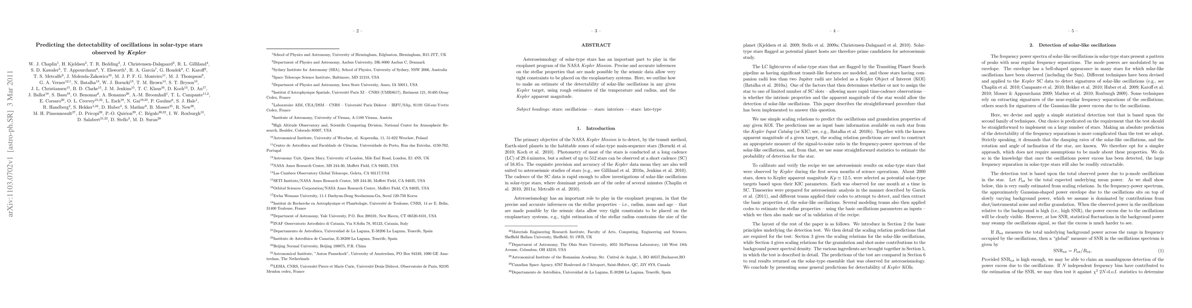 This paper outlines methods for estimating the detectability of solar-like oscillations in solar-type stars observed by NASA's Kepler Mission, using the stars' temperature, radius, and apparent magnitude to make precise inferences on their properties and constrain exoplanetary systems.