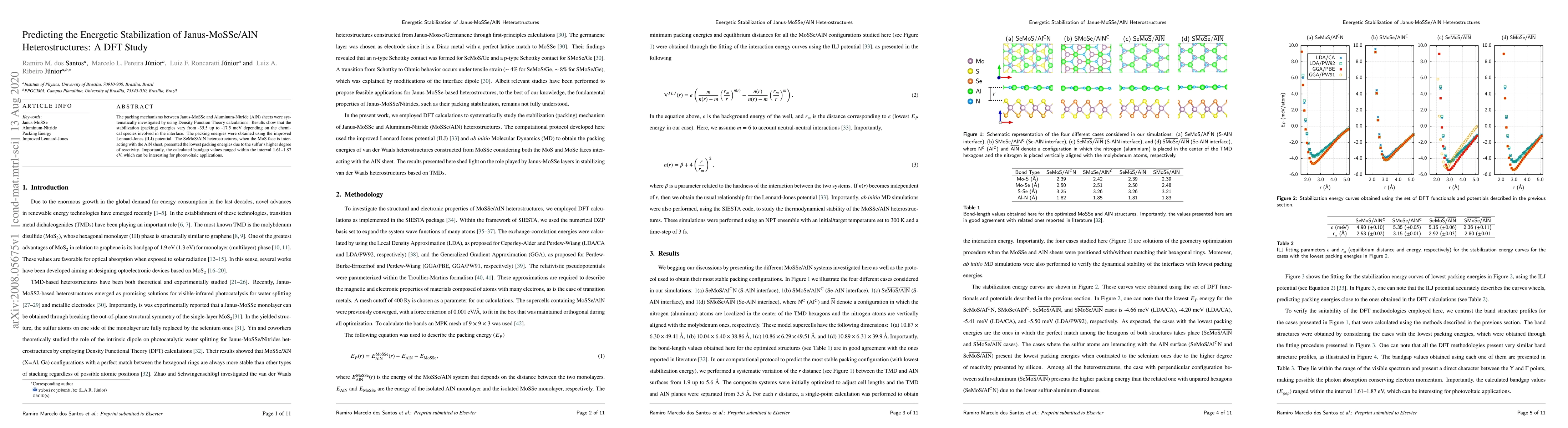 The packing mechanisms between Janus-MoSSe and Aluminum-Nitride (AlN) sheets were systematically investigated by using Density Function Theory calculations. Results show that the stabilization (packing) energies vary from -35.5 up to -17.5 meV depending on the chemical species involved in the interface. The packing energies were obtained using the improved Lennard-Jones (ILJ) potential. The SeMoS/AlN heterostructures, when the MoS face is interacting with the AlN sheet, presented the lowest packing energies due to the sulfur's higher degree of reactivity. Importantly, the calculated bandgap values ranged within the interval 1.61-1.87 eV, which can be interesting for photovoltaic applications.