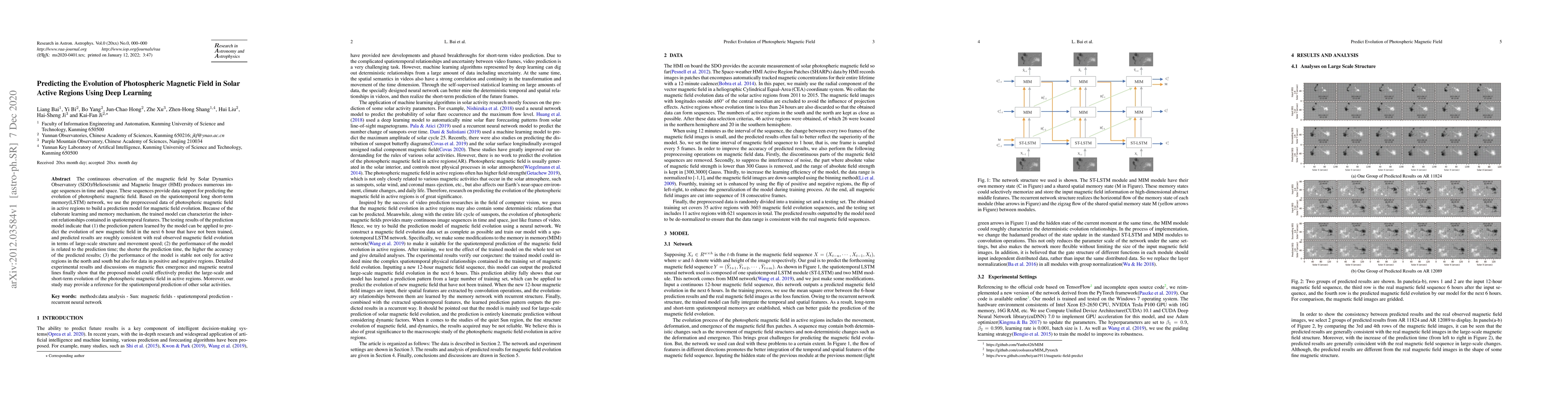 This paper proposes a deep learning model using spatiotemporal LSTM networks to predict the evolution of the photospheric magnetic field in solar active regions. The model demonstrates effective short-term predictions of magnetic field evolution, showing high accuracy for shorter prediction horizons and stable performance across different regions and magnetic polarities.