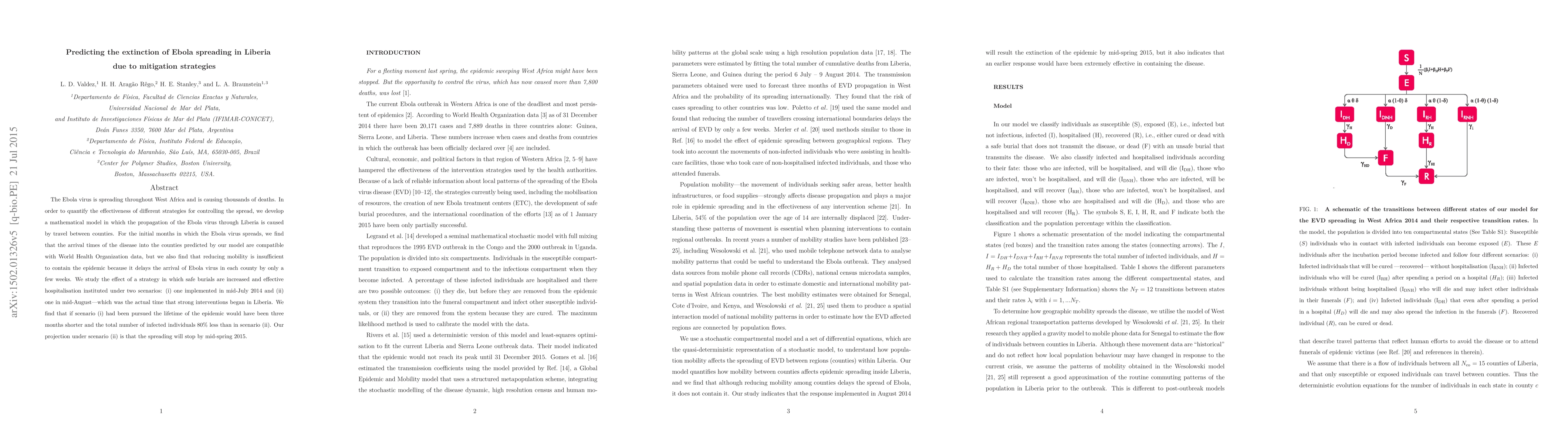 This research uses a mathematical model to study Ebola's spread in Liberia. It finds that while reducing mobility slightly delays the virus, increasing safe burials and effective hospitalization can significantly curb the epidemic, potentially shortening its lifetime by three months and reducing infected individuals by 80% if implemented earlier.