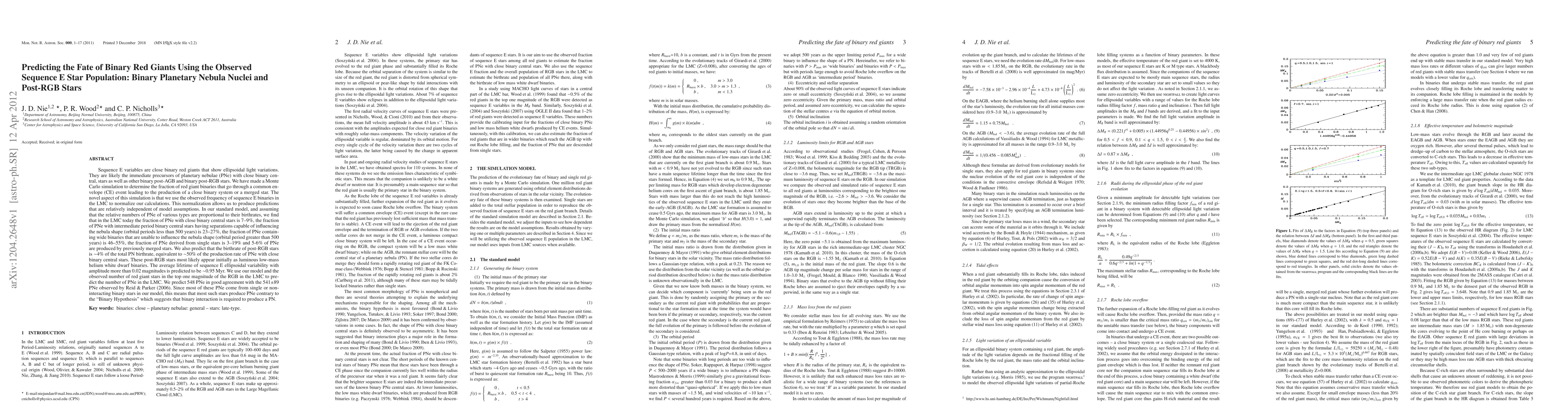 Sequence E variables are close binary red giants that show ellipsoidal light variations. They are likely the immediate precursors of planetary nebulae (PNe) with close binary central. We have made a Monte Carlo simulation to determine the fraction of red giant binaries that go through a common envelope (CE) event leading to the production of a close binary system or a merged star. The novel aspect of this simulation is that we use the observed frequency of sequence E binaries in the LMC to normalize our calculations. In our standard model, we find that in the LMC today the fraction of PNe with close binary central stars is 7-9%, the fraction of PNe with intermediate period binary central stars having separations capable of influencing the nebula shape (P<500 yrs) is 23-27%, the fraction of PNe containing wide binaries that are unable to influence the nebula shape (P>500 yrs) is 46-55%, the fraction of PNe derived from single stars is 3-19% and 5-6% of PNe are produced by previously merged stars. We also predict that the birthrate of post-RGB stars is ~4% of the total PN birthrate, equivalent to ~50% of the production rate of PNe with close binary central stars. These post-RGB stars most likely appear initially as luminous low-mass helium white dwarf binaries. We use our model and the observed number of red giant stars in the top one magnitude of the RGB in the LMC to predict the number of PNe in the LMC. We predict 548 PNe in good agreement with the 541+/-89 PNe observed by Reid & Parker (2006). Since most of these PNe come from single or non-interacting binary stars in our model, this means that most such stars produce PNe contrary to the "Binary Hypothesis" which suggests that binary interaction is required to produce a PN.