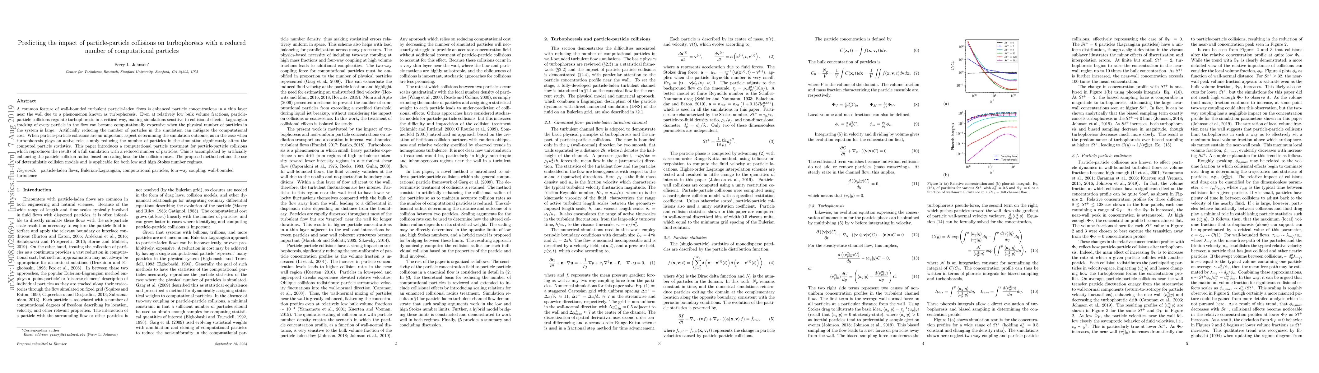 A common feature of wall-bounded turbulent particle-laden flows is enhanced particle concentrations in a thin layer near the wall due to a phenomenon known as turbophoresis. Even at relatively low bulk volume fractions, particle-particle collisions regulate turbophoresis in a critical way, making simulations sensitive to collisional effects. Lagrangian tracking of every particle in the flow can become computationally expensive when the physical number of particles in the system is large. Artificially reducing the number of particles in the simulation can mitigate the computational cost. When particle-particle collisions are an important aspect determining the simulation outcome, as in the case when turbophoresis plays an active role, simply reducing the number of particles in the simulation significantly alters the computed particle statistics. This paper introduces a computational particle treatment for particle-particle collisions which reproduces the results of a full simulation with a reduced number of particles. This is accomplished by artificially enhancing the particle collision radius based on scaling laws for the collision rates. The proposed method retains the use of deterministic collision models and is applicable for both low and high Stokes number regimes.