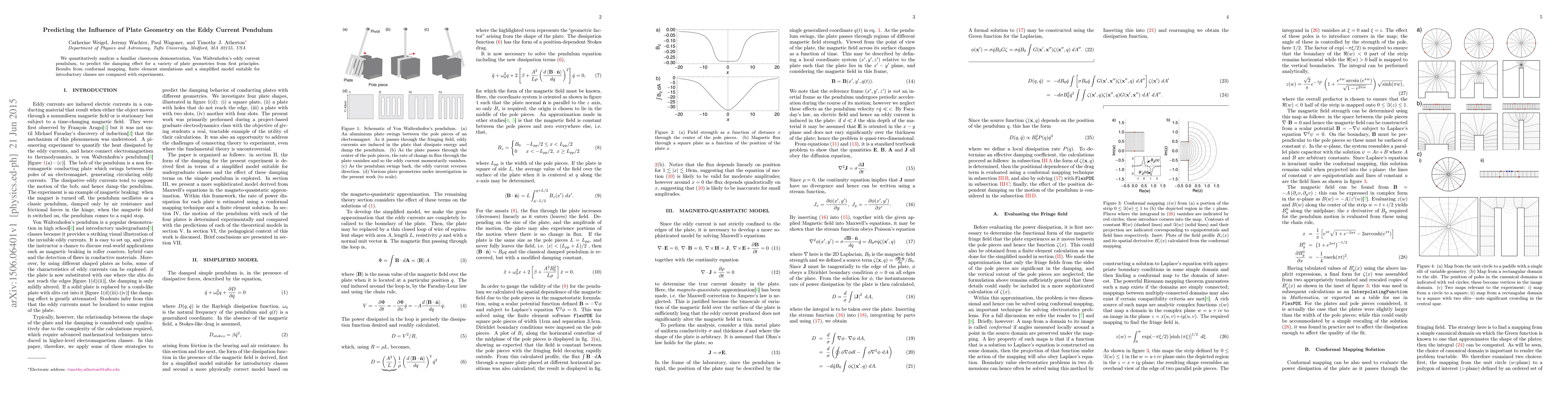 This study quantitatively analyzes Van Waltenhofen's eddy current pendulum to predict damping effects across different plate geometries, employing conformal mapping, finite element simulations, and a simplified model, and compares these predictions with experimental results.