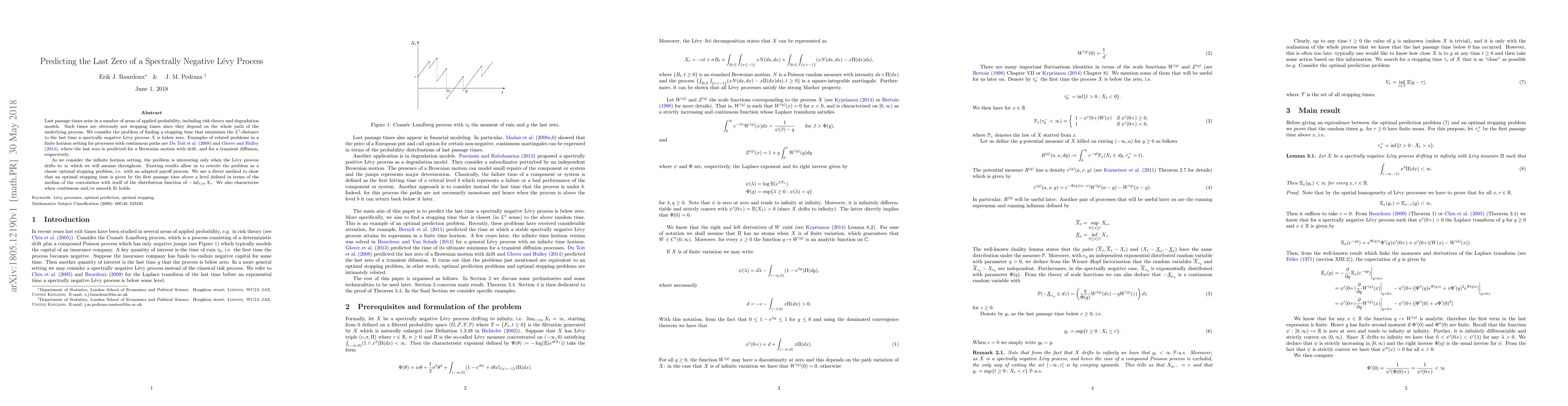 This paper addresses the problem of finding a stopping time that minimizes the $L^1$-distance to the last time a spectrally negative Lévy process is below zero, framing it as an optimal stopping problem. The authors derive an optimal stopping time as the first passage time above a level defined by the median of the Lévy process's distribution function.