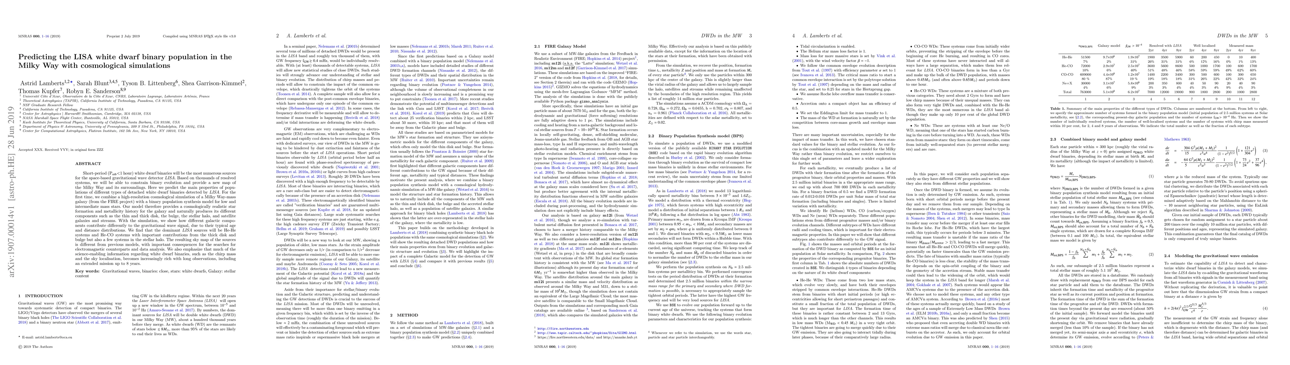 This paper predicts the properties of short-period white dwarf binary populations in the Milky Way detectable by LISA, combining cosmological simulations with binary population synthesis. It highlights the dominant LISA sources as He-He and He-CO systems, emphasizing contributions from the thick disk and bulge, and suggesting a new sky map with implications for electromagnetic counterpart searches and data analysis.