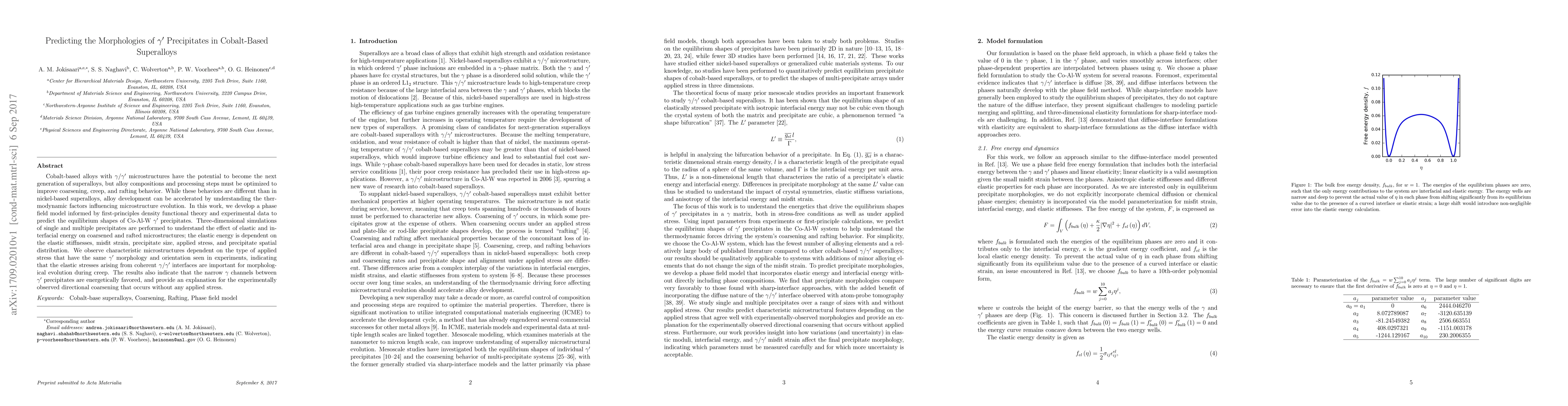Researchers developed a phase field model to predict the morphologies of Co-Al-W precipitates in cobalt-based superalloys, revealing the importance of elastic and interfacial energy on microstructure evolution.