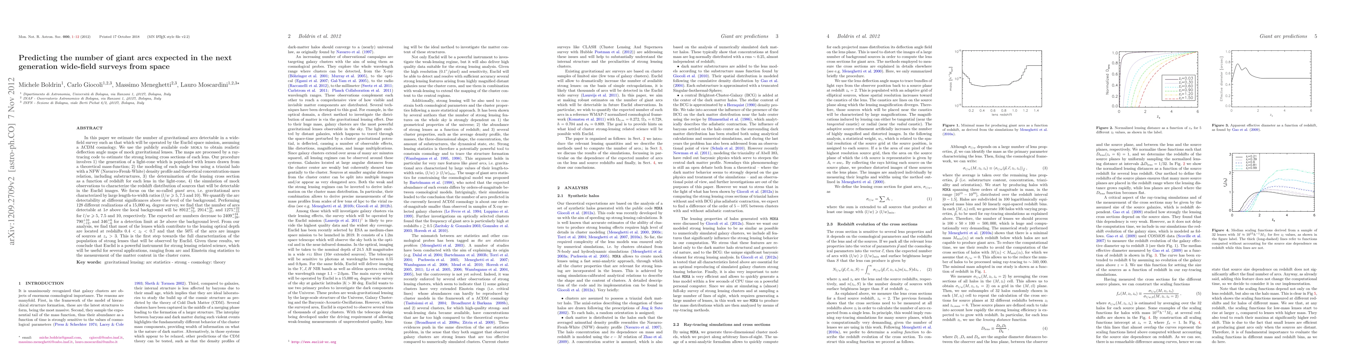 giant arcs, i.e. gravitational arcs characterized by large length-to-width