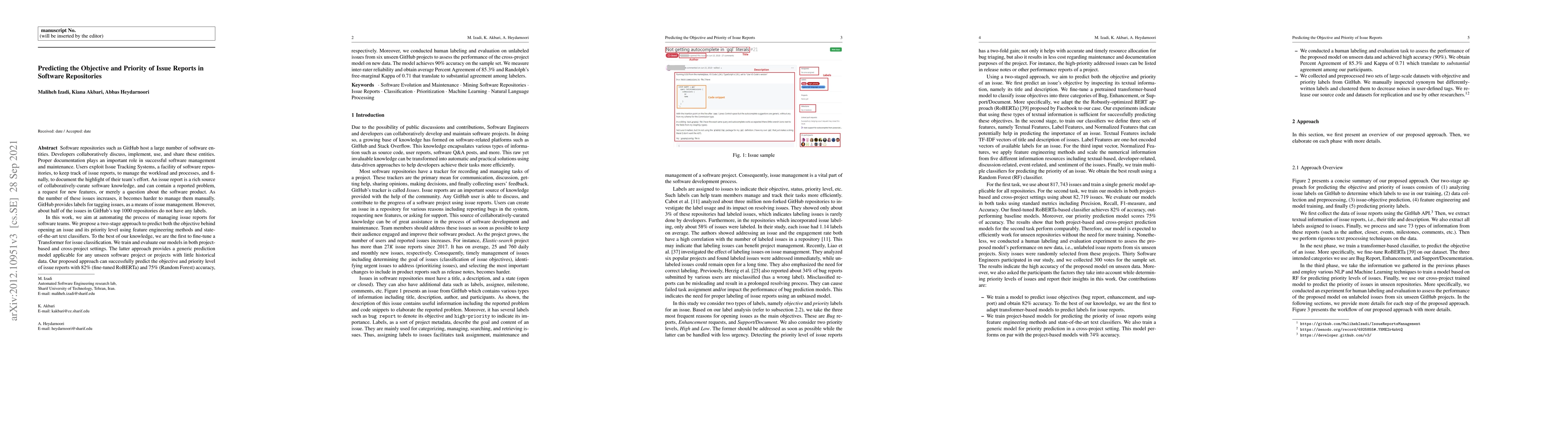 Developers collaboratively discuss, implement, use, and share software entities hosted on software repositories. Proper documentation plays an important role in successful software management and maintenance. Users exploit Issue Tracking Systems, a facility of software repositories, to keep track of issue reports, to manage the workload and processes, and finally, to document the highlight of their team's effort. An issue report is a rich source of collaboratively curated software knowledge, and can contain a reported problem, a request for new features, or merely a question about the software product. As the number of these issues increases, it becomes harder to manage them manually. GitHub provides labels for tagging issues, as a means of issue management. However, about half of the issues in GitHub's top 1000 repositories do not have any labels. We aim at automating the process of managing issue reports for software teams. We propose a two-stage approach to predict both the objective behind opening an issue and its priority level using feature engineering methods and state-of-the-art text classifiers. To the best of our knowledge, we are the first to fine-tune a Transformer for issue classification. We train and evaluate our models in both project-based and cross-project settings. The latter approach provides a generic prediction model applicable for any unseen software project or projects with little historical data. Our proposed approach can successfully predict the objective and priority level of issue reports with 82% and 75% accuracy, respectively. Moreover, we conducted human labeling and evaluation on unlabeled issues from six unseen GitHub projects to assess the performance of the cross-project model on new data. The model achieves 90% accuracy. We obtain 85% average Percent Agreement and 71% Randolph's free-marginal Kappa translating to substantial agreement among labelers.