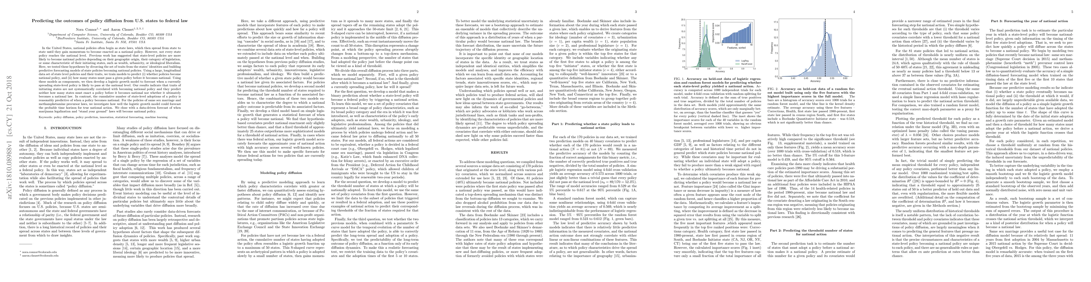 This research develops predictive models to forecast the diffusion of state policies into national laws in the U.S., finding that state-level characteristics like wealth or ideology do not predict policy success at the national level. Instead, the cumulative number of state adoptions is a better predictor of when a policy will become national.