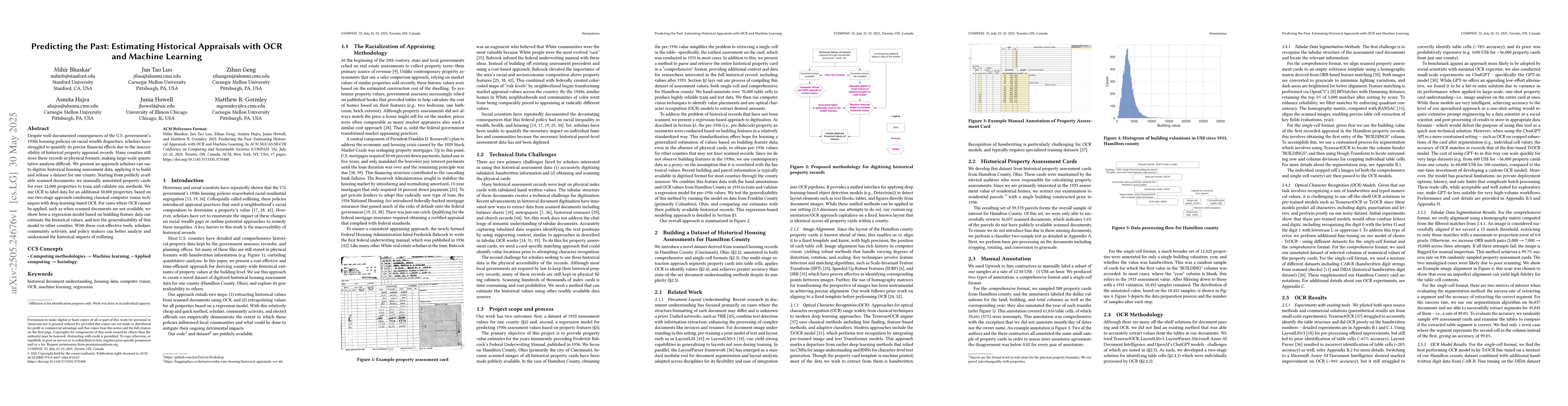 This research introduces a method to digitize historical property appraisal records using OCR and machine learning, focusing on a case study of one U.S. county. The approach combines manual annotation, classical computer vision, and deep learning-based OCR to process 62,000 property cards, with a regression model estimated for unscanned records. This enables cost-effective analysis of historical housing data, aiding scholars, activists, and policymakers in understanding redlining's impact on wealth disparities.