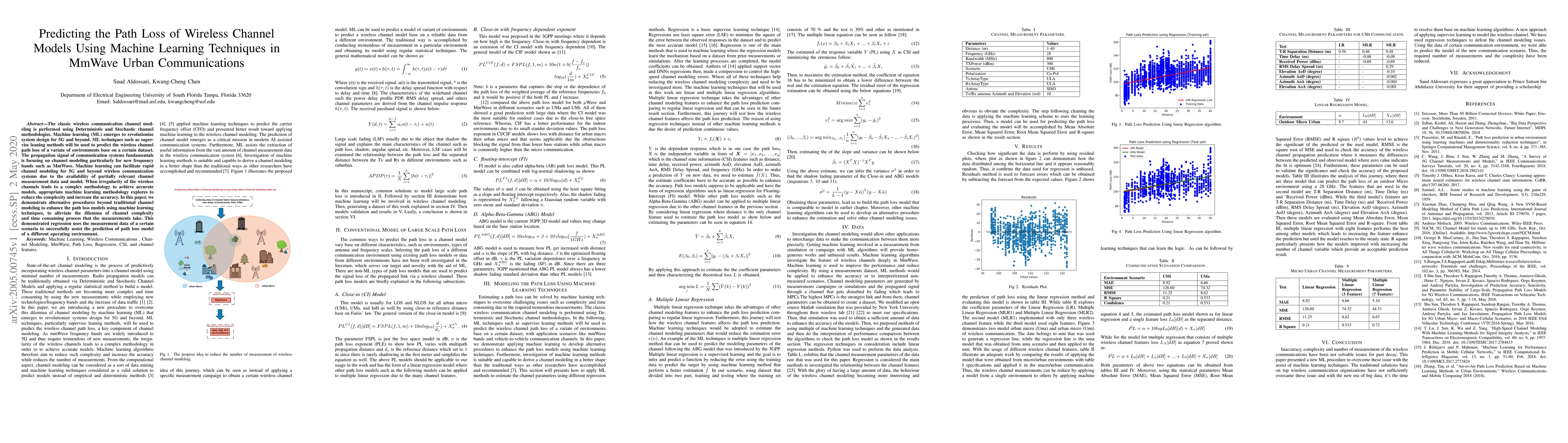 The classic wireless communication channel modeling is performed using Deterministic and Stochastic channel methodologies. Machine learning (ML) emerges to revolutionize system design for 5G and beyond. ML techniques such as supervise leaning methods will be used to predict the wireless channel path loss of a variate of environments base on a certain dataset. The propagation signal of communication systems fundamentals is focusing on channel modeling particularly for new frequency bands such as MmWave. Machine learning can facilitate rapid channel modeling for 5G and beyond wireless communication systems due to the availability of partially relevant channel measurement data and model. When irregularity of the wireless channels lead to a complex methodology to achieve accurate models, appropriate machine learning methodology explores to reduce the complexity and increase the accuracy. In this paper, we demonstrate alternative procedures beyond traditional channel modeling to enhance the path loss models using machine learning techniques, to alleviate the dilemma of channel complexity and time-consuming process that the measurements were taken. This demonstrated regression uses the measurement data of a certain scenario to successfully assist the prediction of path loss model of a different operating environment.