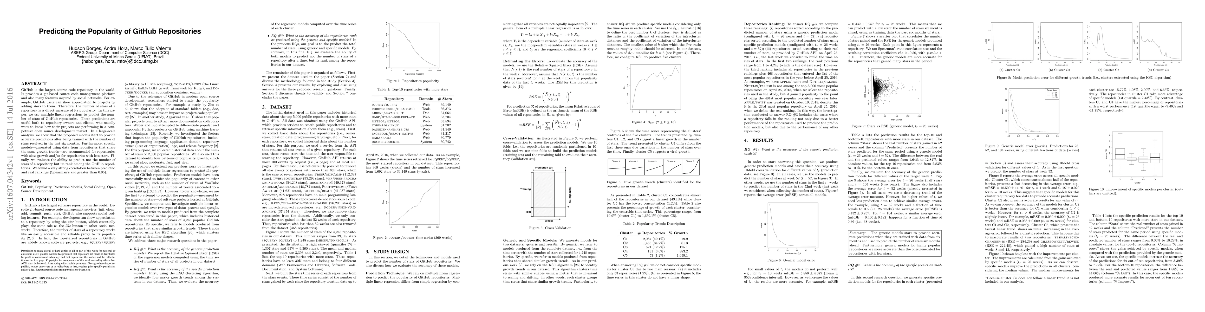 This paper develops multiple linear regression models to predict the number of stars on GitHub repositories, showing accuracy improves with data from the last six months. It also finds strong correlation (Spearman's rho > 0.95) between predicted and actual rankings of repositories.