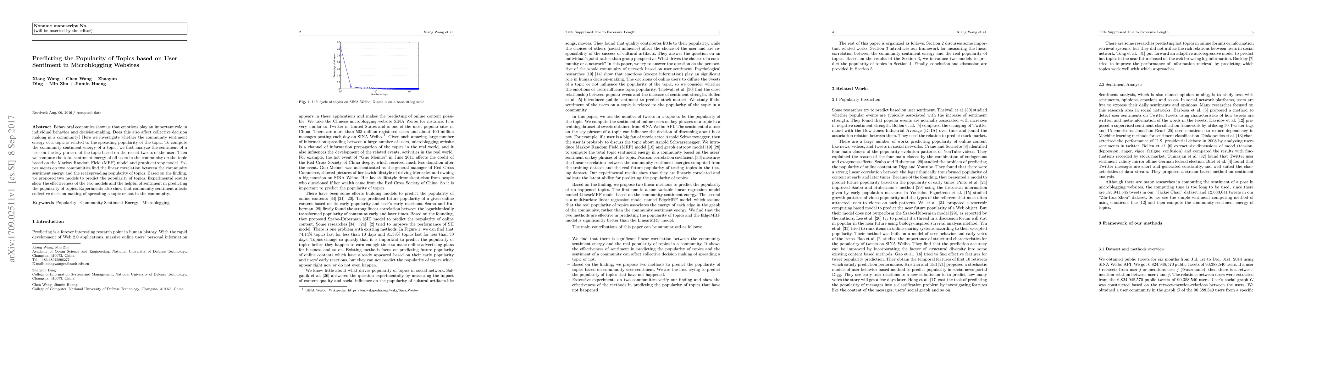 This paper explores how community sentiment influences the popularity of topics on microblogging websites. It proposes a method to compute community sentiment energy using sentiment analysis and models, finding a linear correlation between this energy and topic popularity, and demonstrating the effectiveness of two predictive models.