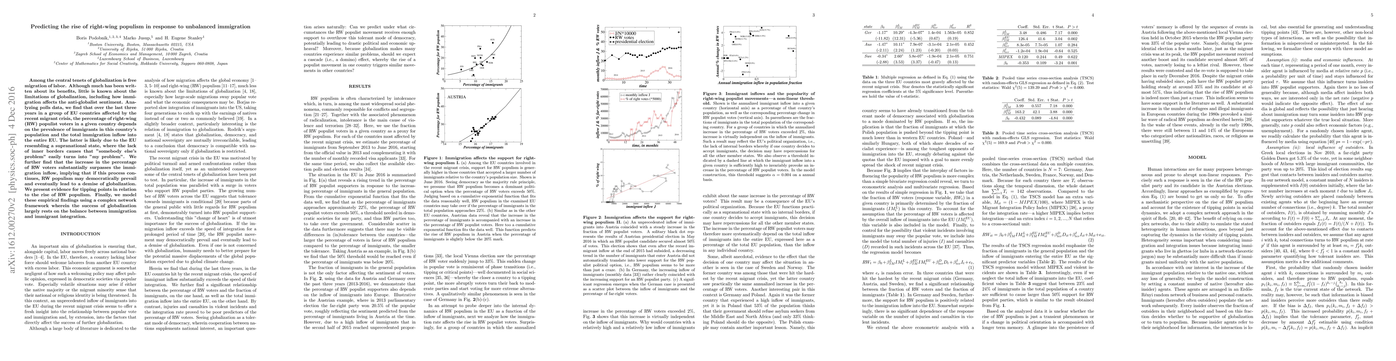 Among the central tenets of globalization is free migration of labor. Although much has been written about its benefits, little is known about the limitations of globalization, including how immigration affects the anti-globalist sentiment. Analyzing polls data, we find that over the last three years in a group of EU countries affected by the recent migrant crisis, the percentage of right-wing (RW) populist voters in a given country depends on the prevalence of immigrants in this country's population and the total immigration inflow into the entire EU. The latter is likely due to the EU resembling a supranational state, where the lack of inner borders causes that "somebody else's problem" easily turns into "my problem". We further find that the increase in the percentage of RW voters substantially surpasses the immigration inflow, implying that if this process continues, RW populism may democratically prevail and eventually lead to a demise of globalization. We present evidence for tipping points in relation to the rise of RW populism. Finally, we model these empirical findings using a complex network framework wherein the success of globalization largely rests on the balance between immigration and immigrant integration.