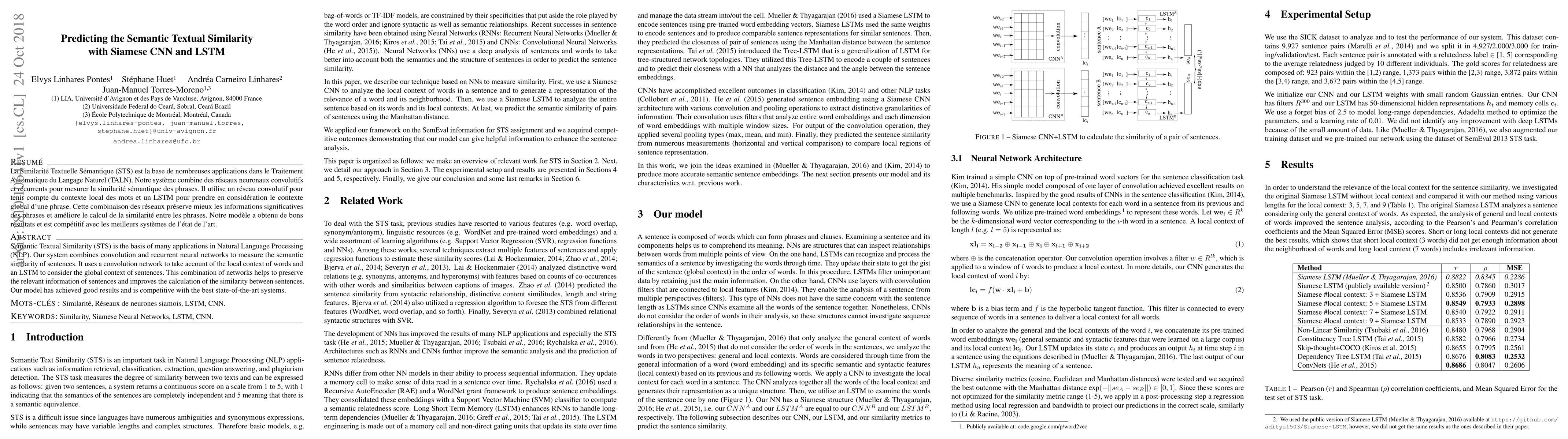 Semantic Textual Similarity (STS) is the basis of many applications in Natural Language Processing (NLP). Our system combines convolution and recurrent neural networks to measure the semantic similarity of sentences. It uses a convolution network to take account of the local context of words and an LSTM to consider the global context of sentences. This combination of networks helps to preserve the relevant information of sentences and improves the calculation of the similarity between sentences. Our model has achieved good results and is competitive with the best state-of-the-art systems.