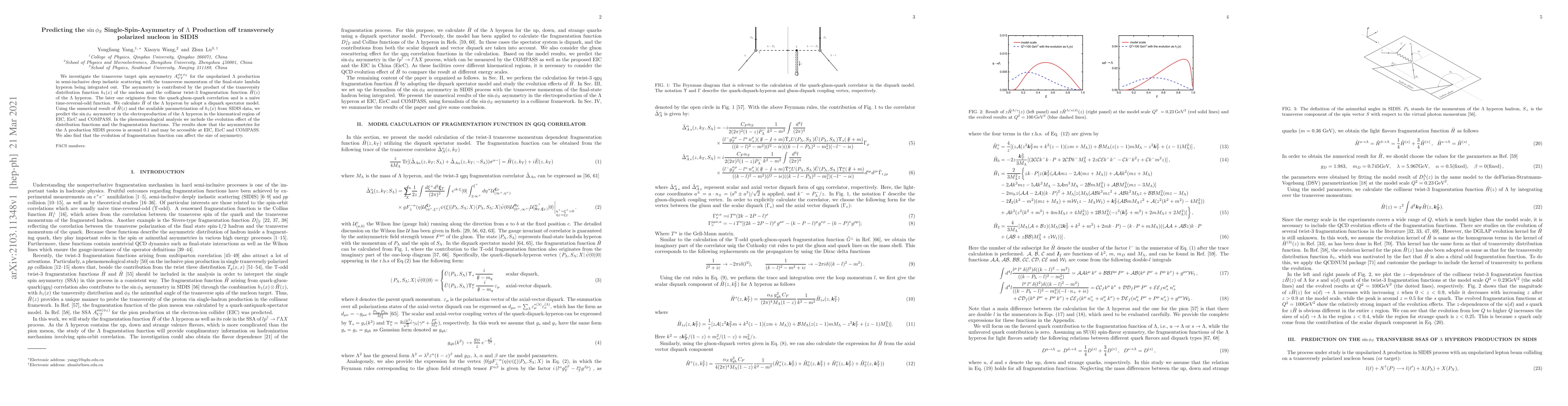 We investigate the transverse target spin asymmetry $A^{\sin\phi_{S}}_{UT}$ for the unpolarized $\Lambda$ production in semi-inclusive deep inelastic scattering with the transverse momentum of the final-state lambda hyperon being integrated out. The asymmetry is contributed by the product of the transversity distribution function $h_1(x)$ of the nucleon and the collinear twist-3 fragmentation function $\tilde{H}(z)$ of the $\Lambda$ hyperon. The later one originates from the quark-gluon-quark correlation and is a naive time-reversal-odd function. We calculate $\tilde{H}$ of the $\Lambda$ hyperon by adopt a diquark spectator model. Using the numerical result of $\tilde{H}(z)$ and the available parametrization of $h_1(x)$ from SIDIS data, we predict the $\sin\phi_{S}$ asymmetry in the electroproduction of the $\Lambda$ hyperon in the kinematical region of EIC, EicC and COMPASS. In the phenomenological analysis we include the evolution effect of the distribution functions and the fragmentation functions. The results show that the asymmetries for the $\Lambda$ production SIDIS process is around 0.1 and may be accessible at EIC, EicC and COMPASS. We also find that the evolution of fragmentation function can affect the size of asymmetry.