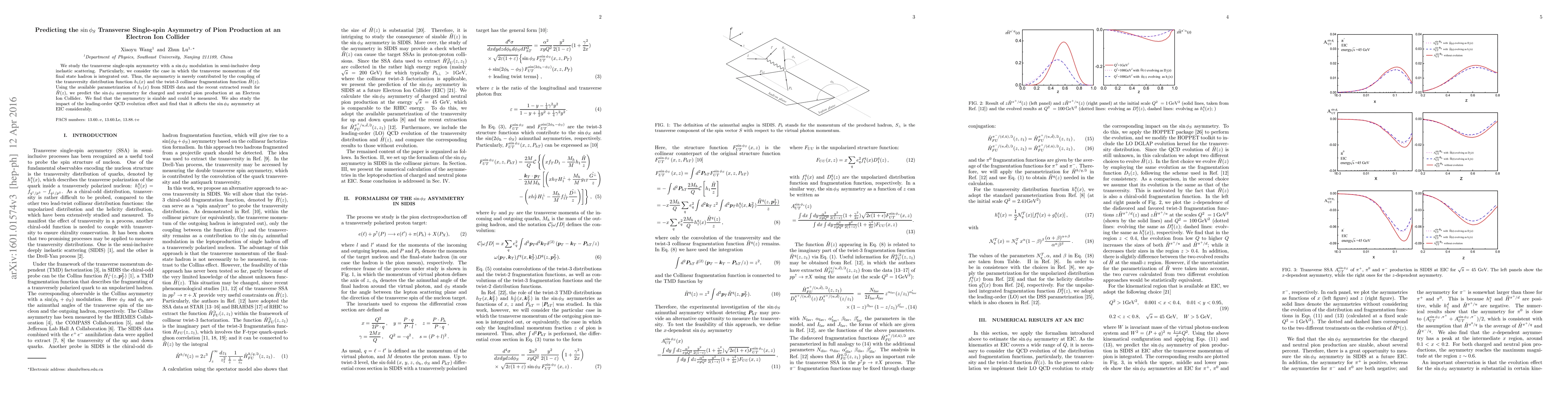 This paper predicts the $\sin\phi_S$ transverse single-spin asymmetry in pion production at an Electron Ion Collider, attributing it to the coupling of the transversity distribution function and a twist-3 fragmentation function. The study finds a sizable asymmetry that could be measured, with leading-order QCD evolution significantly impacting the results.